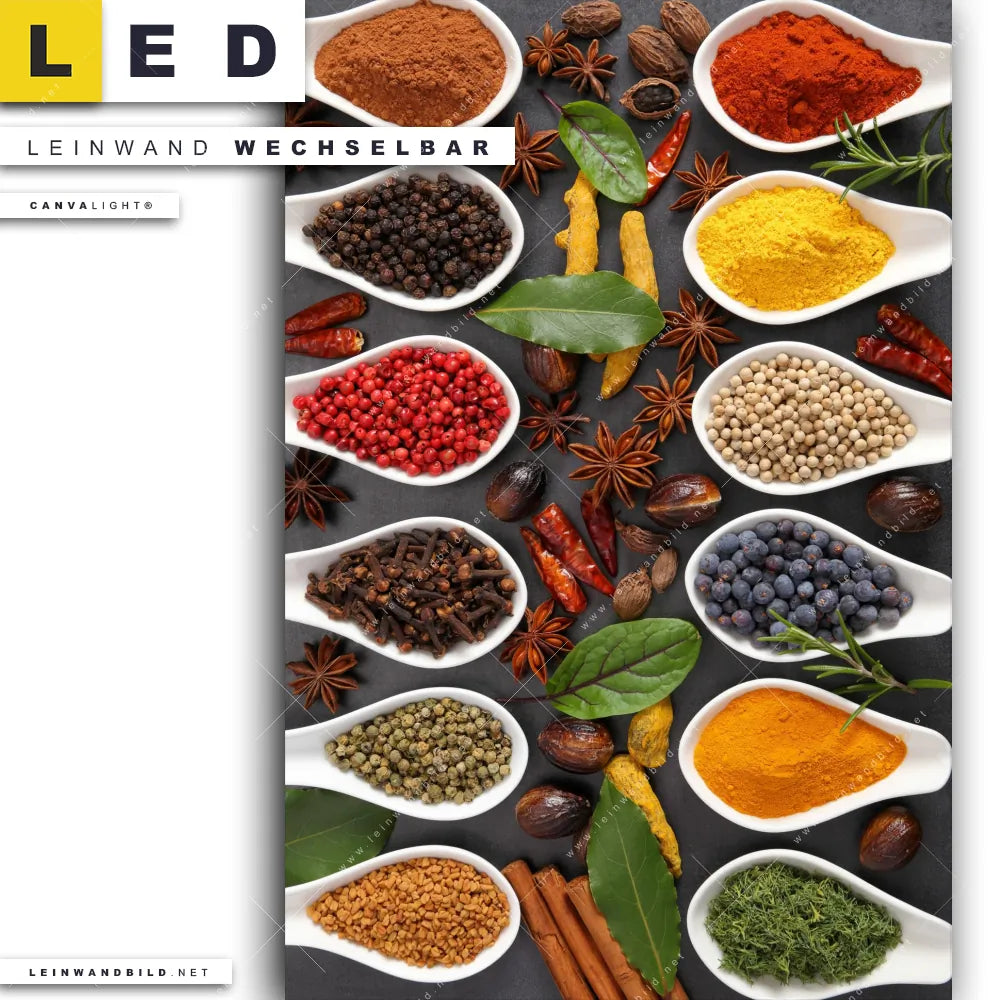 Du bist auf der Suche nach einem Essen - Trinken LED Leinwandbild im Hochformat? Begriffe wie Gewürze, Kräuter, Löffel, Besteck, Lebensmittel, Geschmack, Indien haben Dich auf der Suche nach Deinem neuen XXL LED Wandbild mit wechselbarer Leinwand inspiriert? Farben wie Bunt, Weiss, Blau, Braun, Beige, Gelb , Grün, Lila, Ocker, Orange, Rot, Rosa dürfen auf Deinem neuen Leinwand-LED-Bild nicht fehlen und Leuchtbilder im Natürlich - Realistisch Stil passen perfekt zu Deinem Einrichtungsstil?