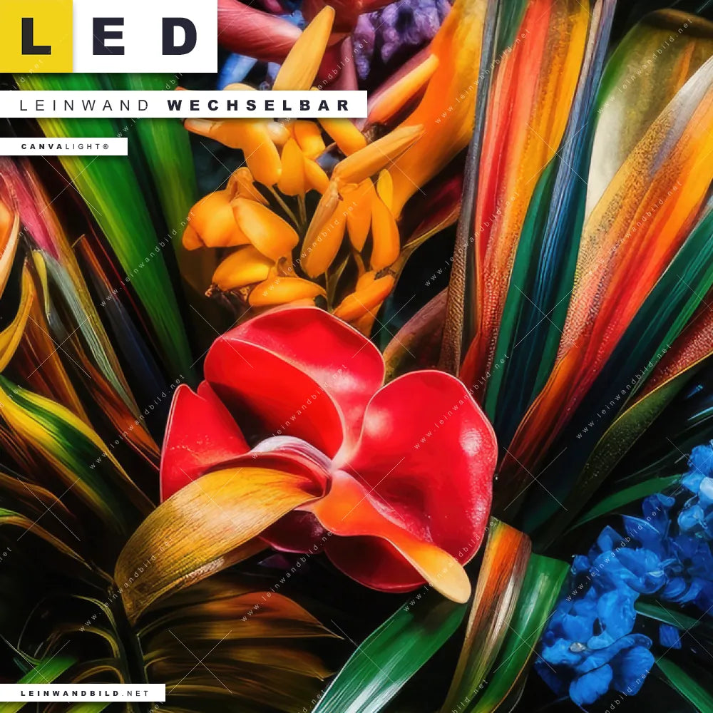 Du bist auf der Suche nach einem Blumen - Botanik LED Leinwandbild im Panorama-Format? Begriffe wie Blätter, Pflanze, Natur, Laub, Dschungel, Blüten, Blumen haben Dich auf der Suche nach Deinem neuen XXL LED Wandbild mit wechselbarer Leinwand inspiriert? Farben wie Grün, Rot, Gelb , Blau dürfen auf Deinem neuen extra breiten Leinwand-LED-Bild nicht fehlen und Leuchtbilder im Floral, Modern Art Stil passen perfekt zu Deinem Einrichtungsstil?