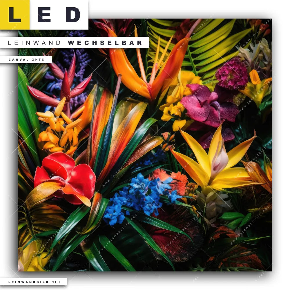 Du bist auf der Suche nach einem Blumen - Botanik LED Leinwandbild im Quadratischen Format? Begriffe wie Blätter, Pflanze, Natur, Laub, Dschungel, Blüten, Blumen haben Dich auf der Suche nach Deinem neuen XXL LED Wandbild mit wechselbarer Leinwand inspiriert? Farben wie Grün, Rot, Gelb , Blau dürfen auf Deinem neuen Leinwand-LED-Bild nicht fehlen und Leuchtbilder im Floral, Modern Art Stil passen perfekt zu Deinem Einrichtungsstil?