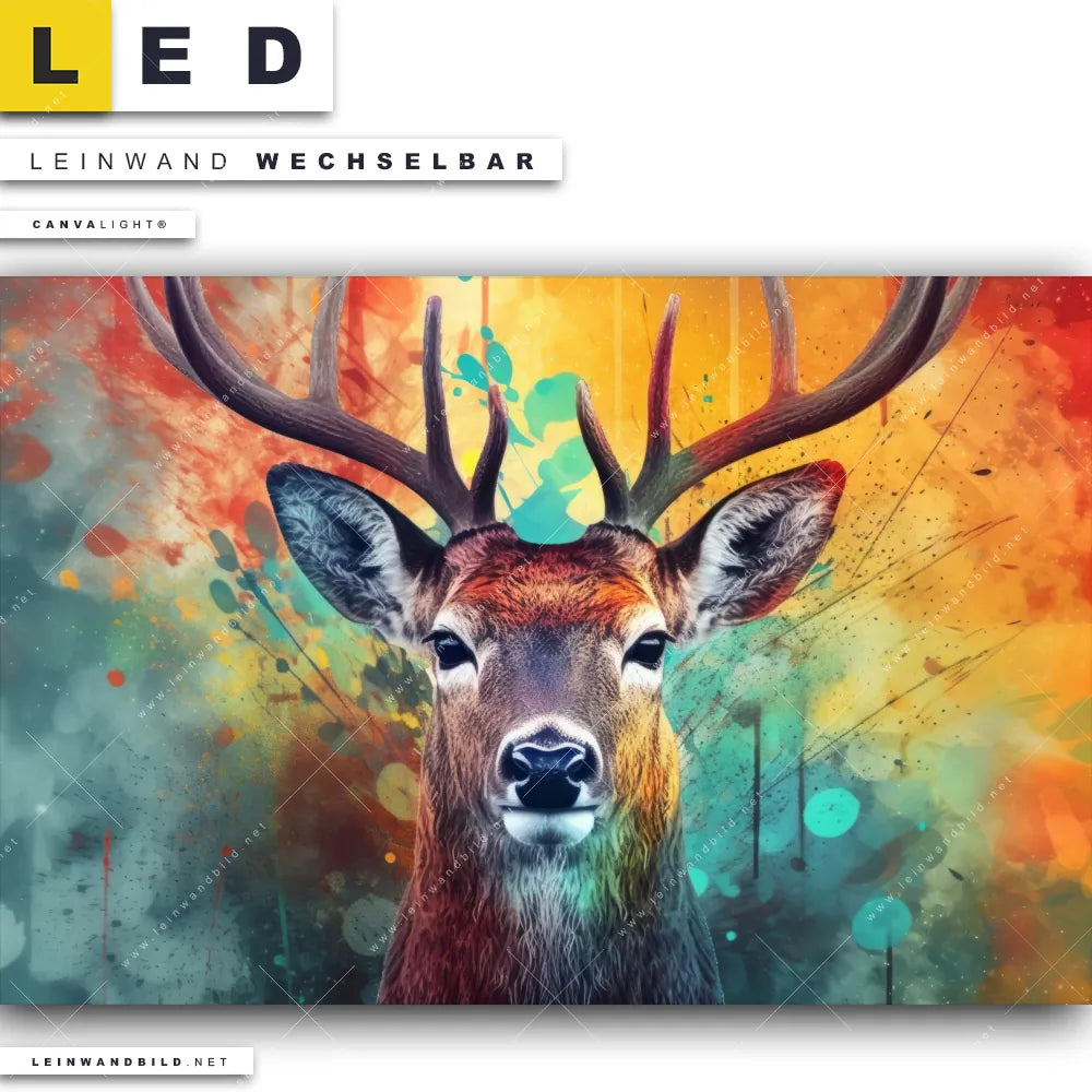LED Leinwandbild Canvalight® TEX | Farbenfrohes Hirschporträt | Querformat