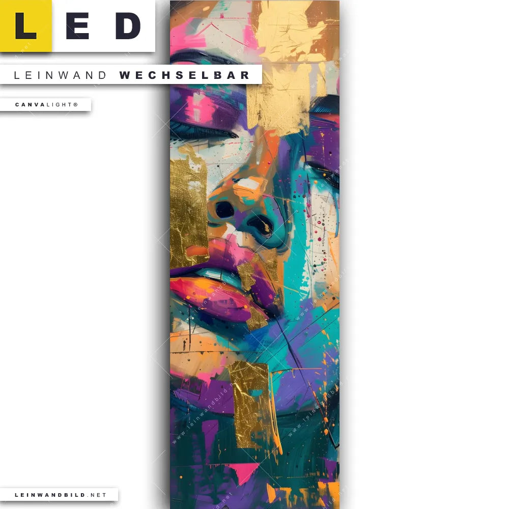 LED Leinwandbild Canvalight® TEX | Farbexplosion - Porträt Florence | Schmal