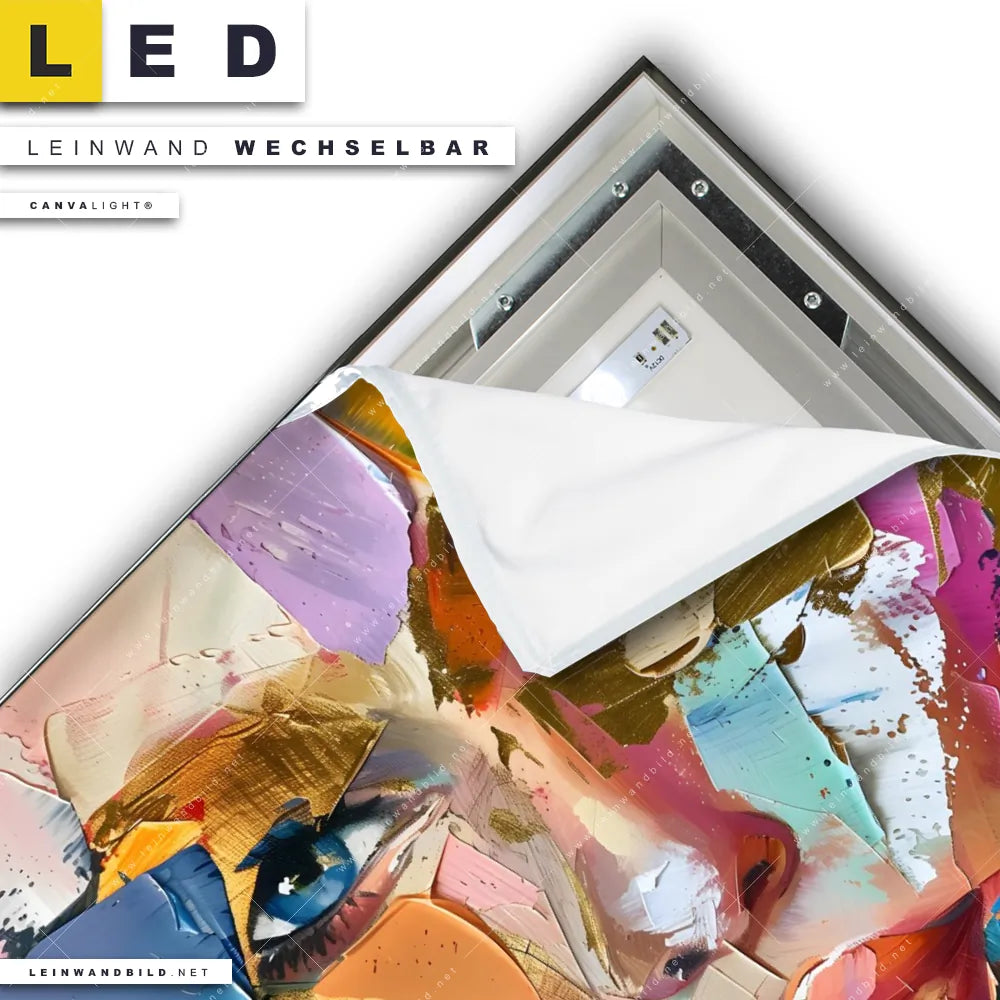 LED Leinwandbild Canvalight® TEX | Farbexplosion - Porträt Nova | Quadrat