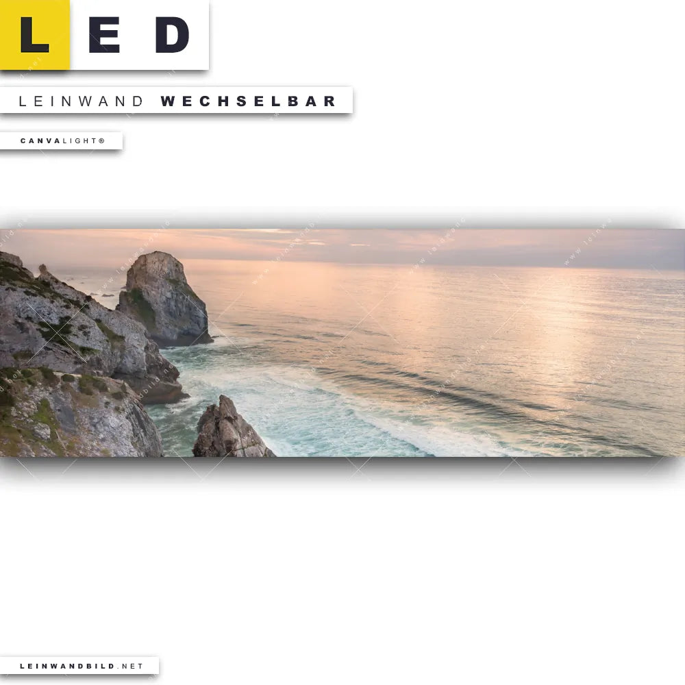 LED Leinwandbild Canvalight® TEX | Felsen am Meer | Panorama