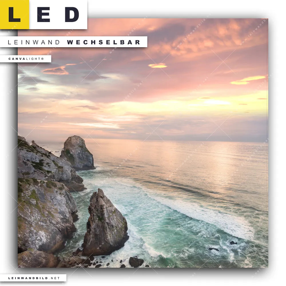 Du bist auf der Suche nach einem Landschaften, Strand - Meer LED Leinwandbild im Quadratischen Format? Begriffe wie Meer, Küste, Sonnenuntergang, Stein, Natur, Felsen, Sommer, Herbst haben Dich auf der Suche nach Deinem neuen XXL LED Wandbild mit wechselbarer Leinwand inspiriert? Farben wie Beige, Rosa, Mint dürfen auf Deinem neuen Leinwand-LED-Bild nicht fehlen und Leuchtbilder im Natürlich - Realistisch, Modern Art Stil passen perfekt zu Deinem Einrichtungsstil?