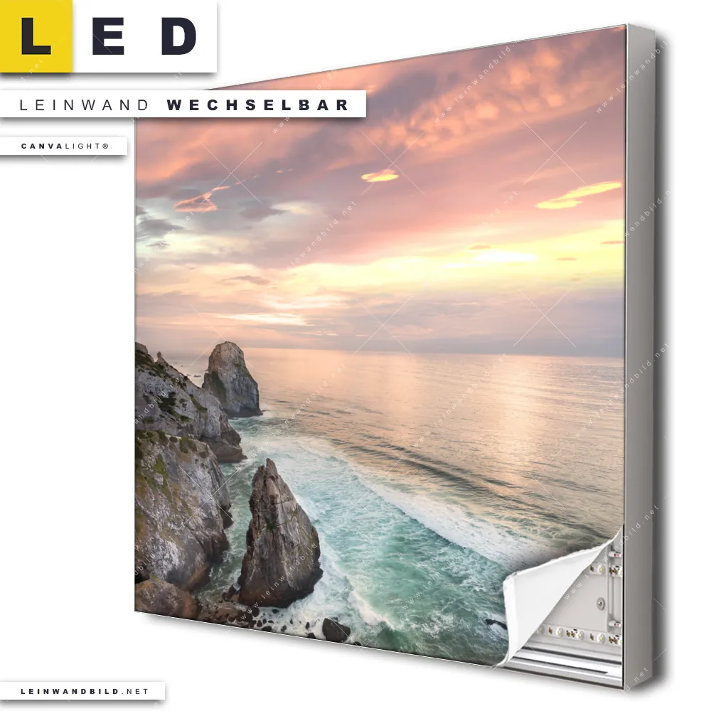 Du konfigurierst Dein individuelles LED Leinwandbild Canvalight® TEX | Felsen am Meer | Quadrat und wir produzieren es NEU für Dich. Unsere Landschaften, Strand - Meer LED Bilder mit wechselbarer Textil-Leinwand sind KEINE Lagerware. Du bist Dir unsicher, welches Motiv oder Format das richtige für dein individuelles Canvalight® Leuchtbild ist, dann helfen wir dir gerne weiter und beraten dich!