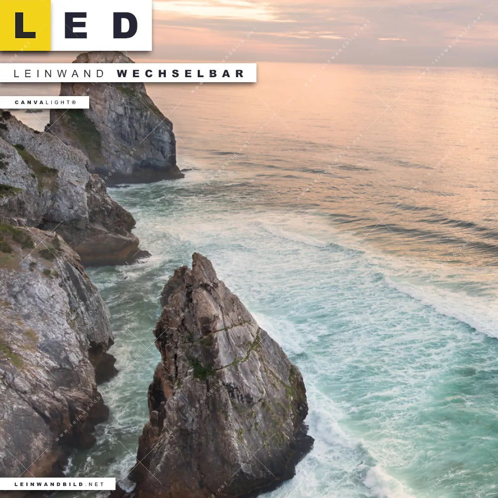 Dann sollte das LED Leinwandbild Canvalight® TEX | Felsen am Meer | Quadrat den Weg zu Dir finden. Das stufenlos dimmbare Leinwandbild Klippen am Meer im steckerfertigen Leuchtrahmen mit Fernbedienung und optionaler Farbtemperatursteuerung fügt sich als Eye-Catcher harmonisch in jedes Arzt - Praxis, Büro - Kanzlei, Wohnzimmer - Schlafzimmer Raumkonzept ein.