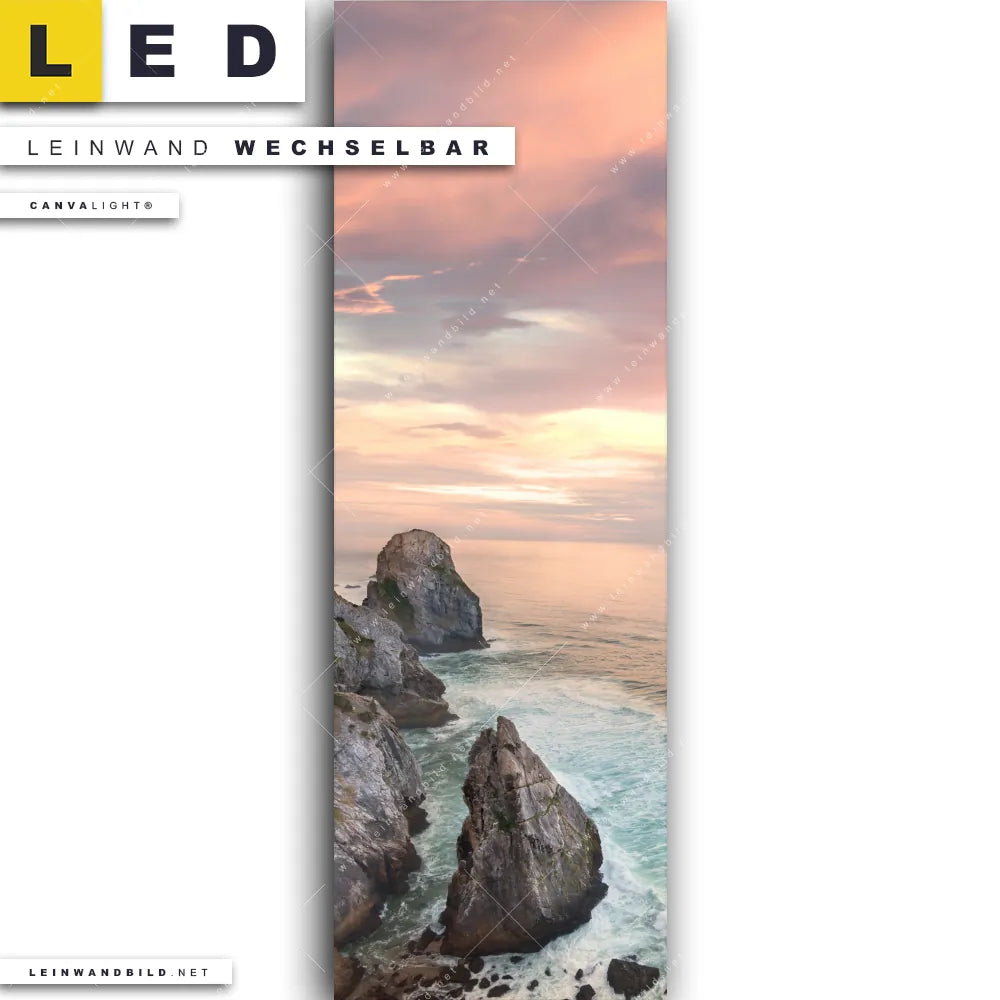 LED Leinwandbild Canvalight® TEX | Felsen am Meer | Schmal