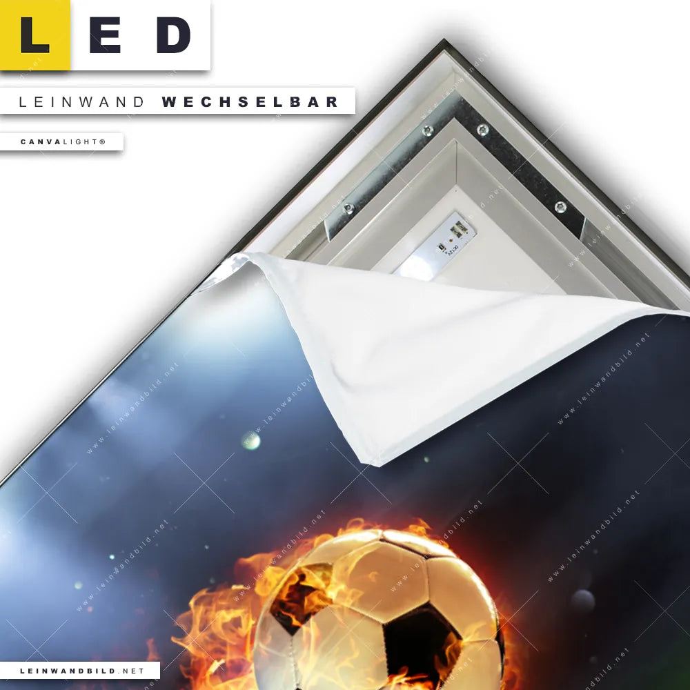 LED Leinwandbild Canvalight® TEX | Feuriger Fussball | Querformat