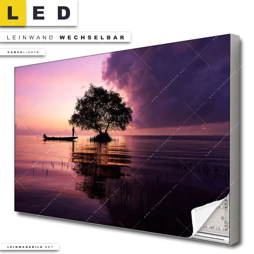 Du bist auf der Suche nach einem Landschaften LED Leinwandbild im Querformat? Begriffe wie Berge, See, Boot, Boote, Wasserspiegelung, Wasser, Sonnenuntergang, Sonnenaufgang, Bäume, Natur haben Dich auf der Suche nach Deinem neuen XXL LED Wandbild mit wechselbarer Leinwand inspiriert? Farben wie Lila, Rosa, Schwarz dürfen auf Deinem neuen breiten Leinwand-LED-Bild nicht fehlen und Leuchtbilder im Natürlich - Realistisch Stil passen perfekt zu Deinem Einrichtungsstil?