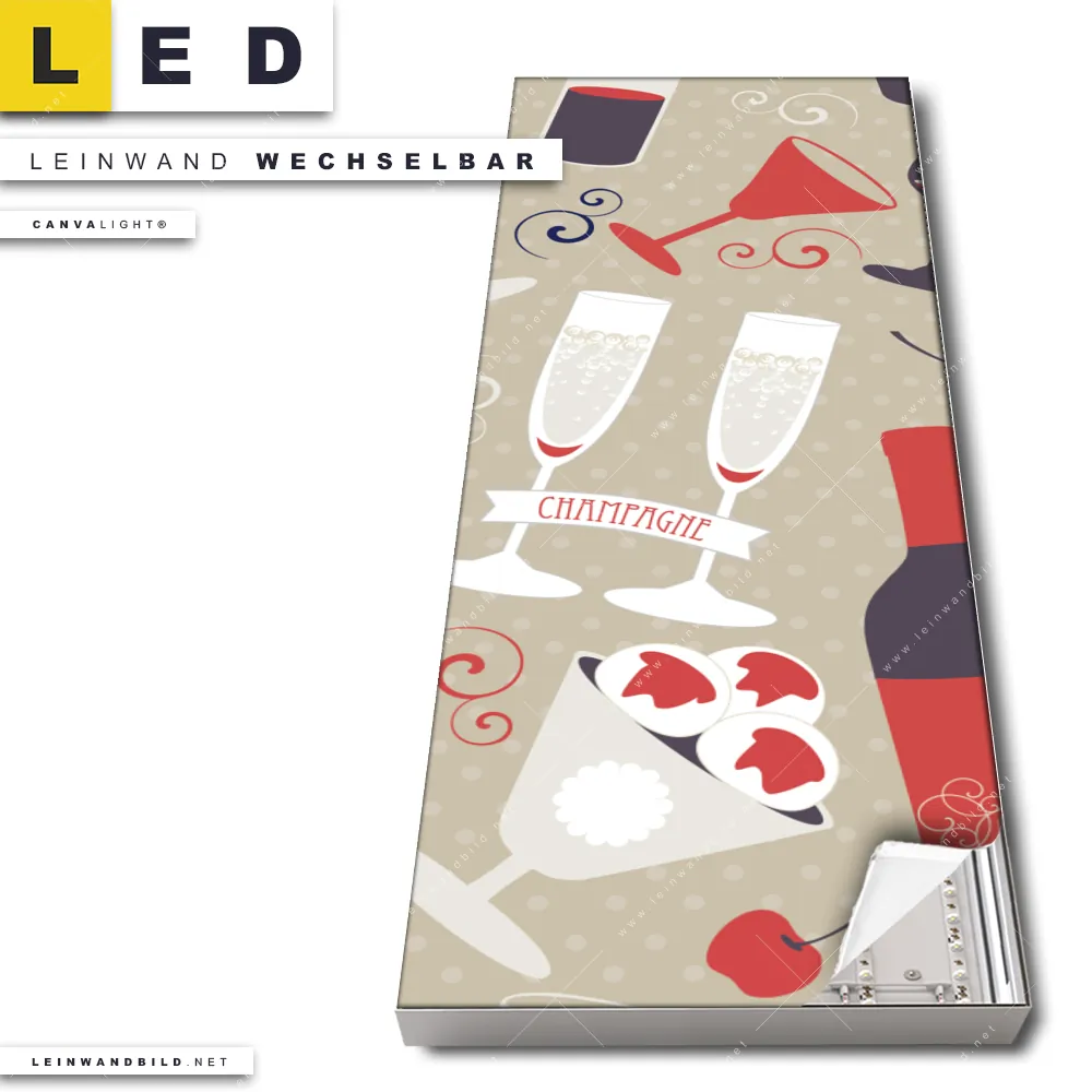 Du bist auf der Suche nach einem Essen - Trinken, Muster - Texturen LED Leinwandbild im Schmalen Format? Begriffe wie Küche, Wein, Gläser, genießen, Alkohol, Rotwein, Flaschen, modern, Cocktailkirsche, Sekt, Martinigläser, Obst haben Dich auf der Suche nach Deinem neuen XXL LED Wandbild mit wechselbarer Leinwand inspiriert? Farben wie Rot, Beige, Weiss, Lila dürfen auf Deinem neuen Leinwand-LED-Bild im Panorama-Hochformat nicht fehlen und Leuchtbilder im Modern Art Stil passen perfekt zu Deinem Einrichtungsstil?
