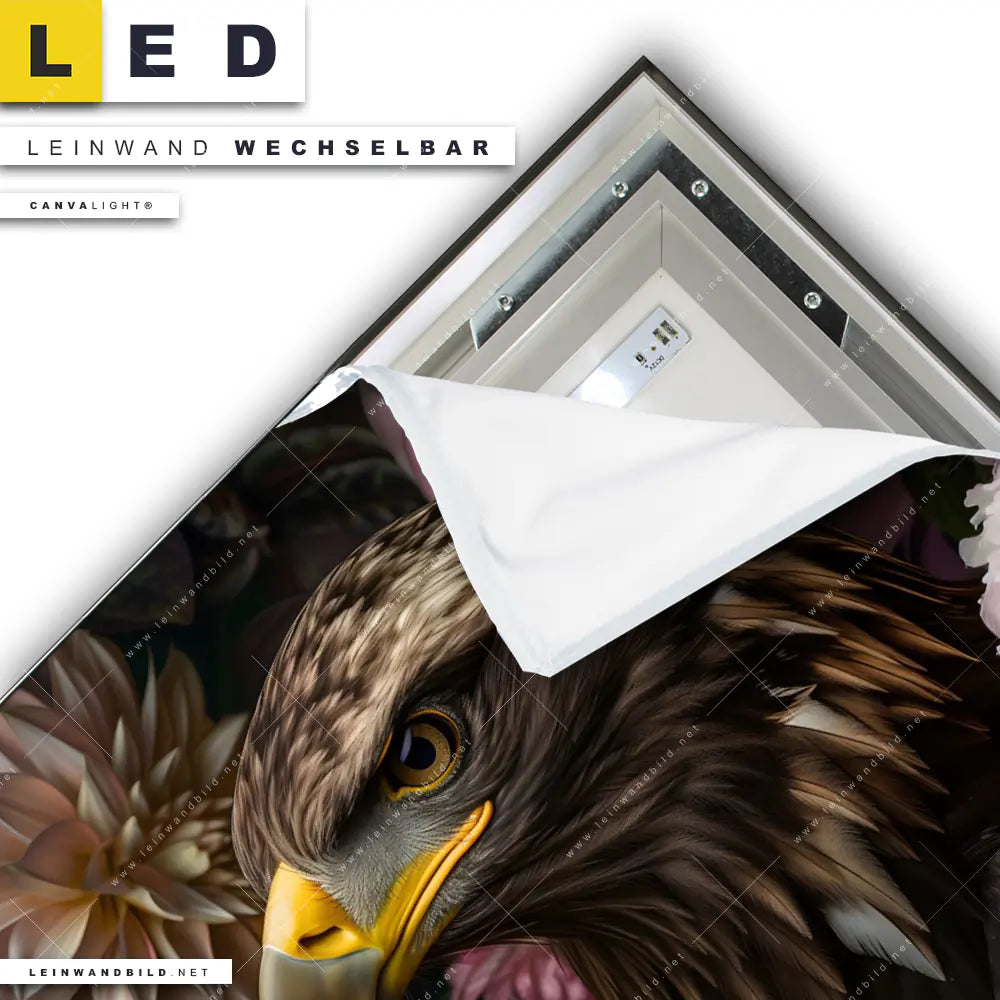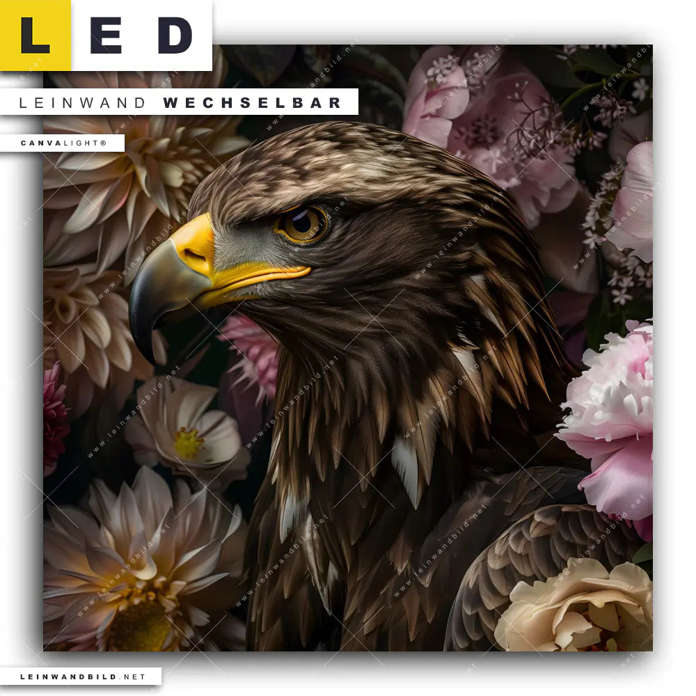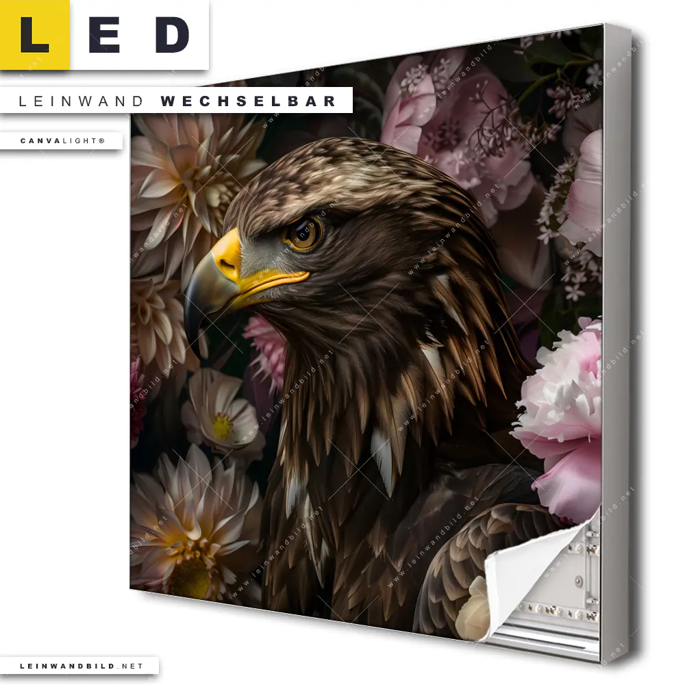 LED Leinwandbild Canvalight® TEX | Florale Eleganz und Adlerblick | Quadrat