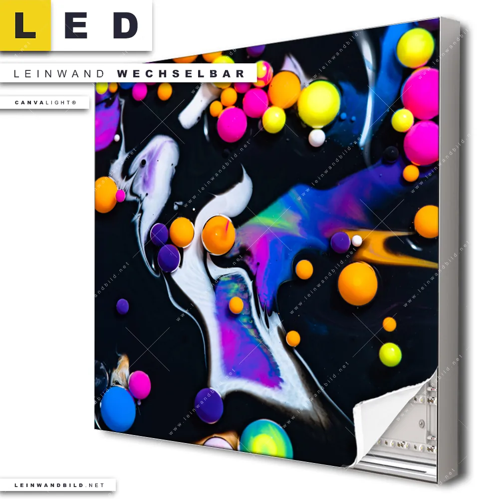 Du konfigurierst Dein individuelles LED Leinwandbild Canvalight® TEX | Fluid Art - Bubbless Neon | Quadrat und wir produzieren es NEU für Dich. Unsere Muster - Texturen LED Bilder mit wechselbarer Textil-Leinwand sind KEINE Lagerware. Du bist Dir unsicher, welches Motiv oder Format das richtige für dein individuelles Canvalight® Leuchtbild ist, dann helfen wir dir gerne weiter und beraten dich!