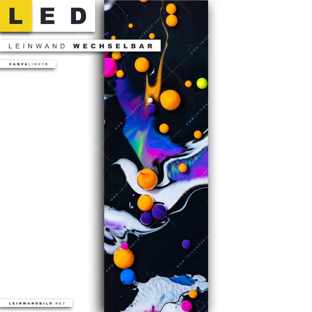 Du konfigurierst Dein individuelles LED Leinwandbild Canvalight® TEX | Fluid Art - Bubbless Neon | Schmal und wir produzieren es NEU für Dich. Unsere Muster - Texturen LED Bilder mit wechselbarer Textil-Leinwand sind KEINE Lagerware. Du bist Dir unsicher, welches Motiv oder Format das richtige für dein individuelles Canvalight® Leuchtbild ist, dann helfen wir dir gerne weiter und beraten dich!