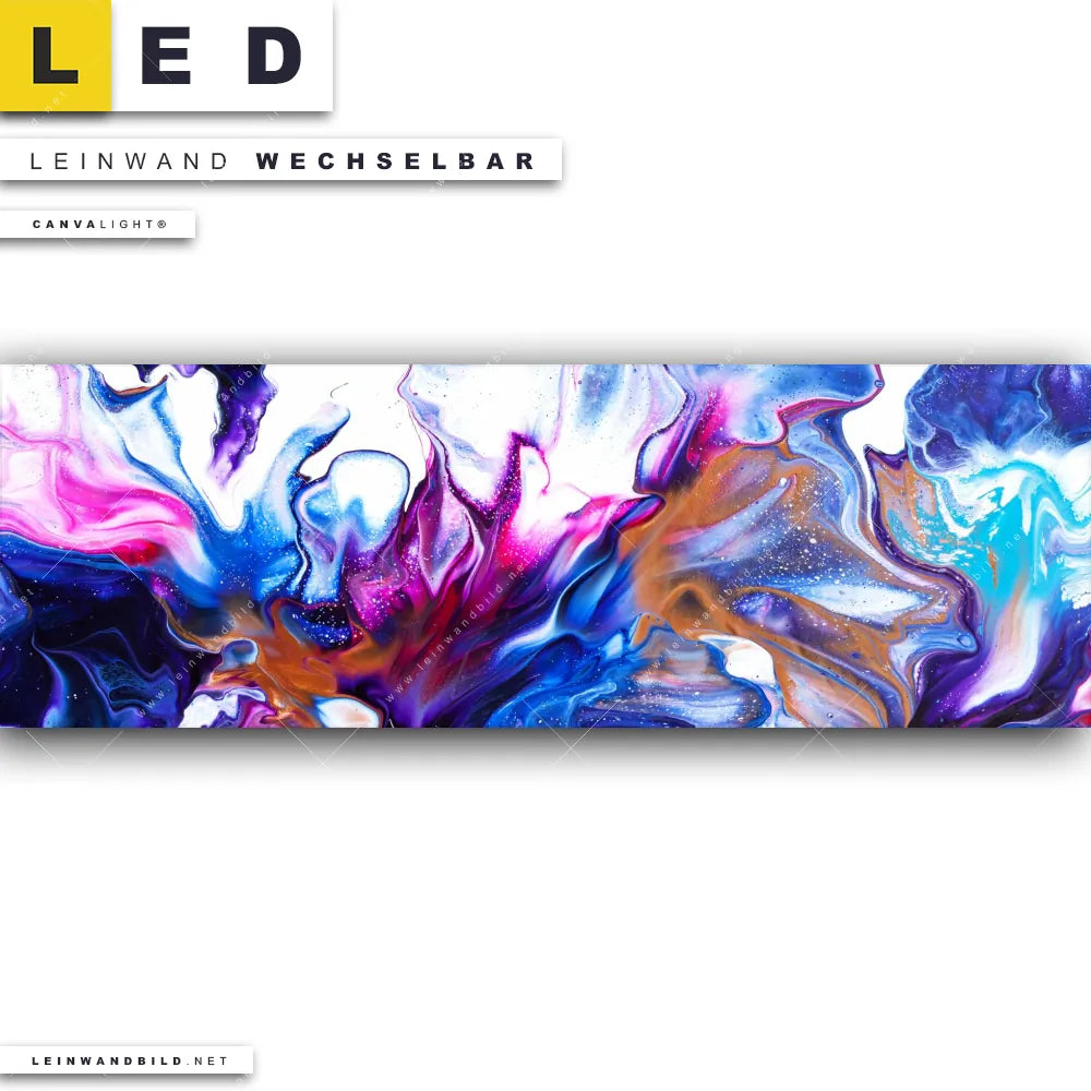 Du bist auf der Suche nach einem Muster - Texturen LED Leinwandbild im Panorama-Format? Begriffe wie Flüssigkeit, Acryl, flüssig, Farbe, Marmorierung, Tinte, Alkohol, Fluid Art haben Dich auf der Suche nach Deinem neuen XXL LED Wandbild mit wechselbarer Leinwand inspiriert? Farben wie Weiss, Blau, Lila, Türkis dürfen auf Deinem neuen extra breiten Leinwand-LED-Bild nicht fehlen und Leuchtbilder im Abstrakt, Modern Art Stil passen perfekt zu Deinem Einrichtungsstil?
