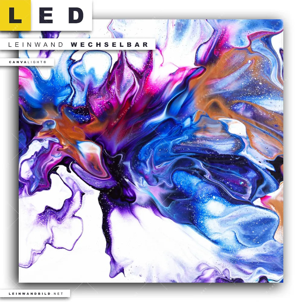 Du bist auf der Suche nach einem Muster - Texturen LED Leinwandbild im Quadratischen Format? Begriffe wie Flüssigkeit, Acryl, flüssig, Farbe, Marmorierung, Tinte, Alkohol, Fluid Art haben Dich auf der Suche nach Deinem neuen XXL LED Wandbild mit wechselbarer Leinwand inspiriert? Farben wie Weiss, Blau, Lila, Türkis dürfen auf Deinem neuen Leinwand-LED-Bild nicht fehlen und Leuchtbilder im Abstrakt, Modern Art Stil passen perfekt zu Deinem Einrichtungsstil?