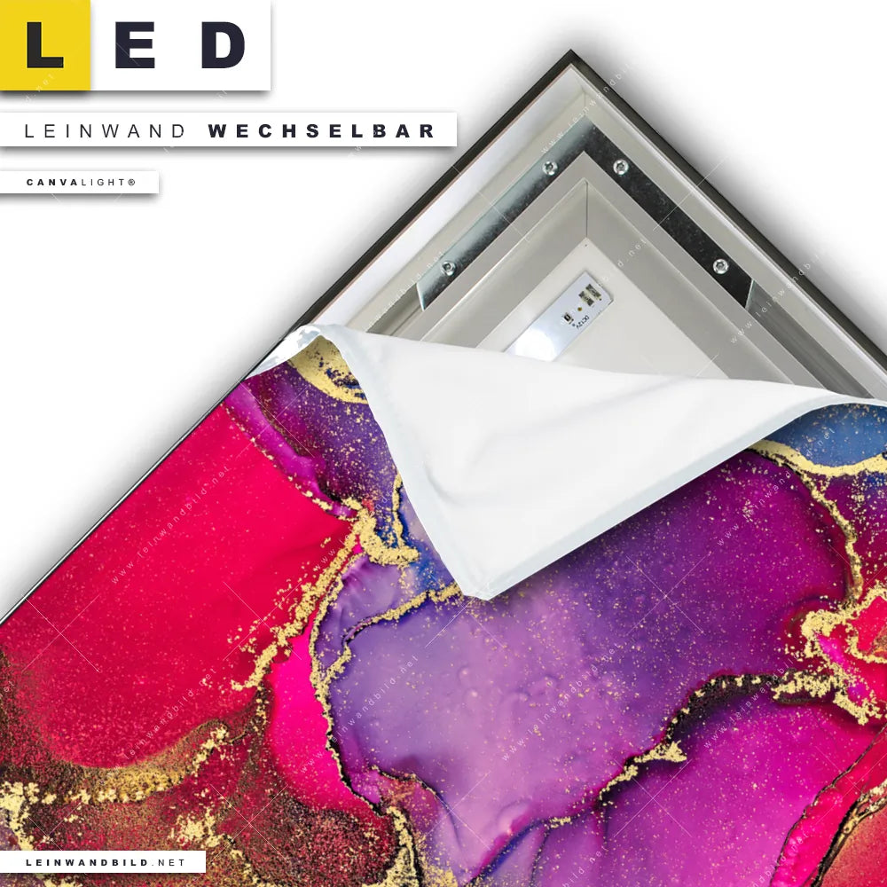 Du konfigurierst Dein individuelles LED Leinwandbild Canvalight® TEX | Fluid Art Frühlingszauber | Quadrat und wir produzieren es NEU für Dich. Unsere Muster - Texturen LED Bilder mit wechselbarer Textil-Leinwand sind KEINE Lagerware. Du bist Dir unsicher, welches Motiv oder Format das richtige für dein individuelles Canvalight® Leuchtbild ist, dann helfen wir dir gerne weiter und beraten dich!