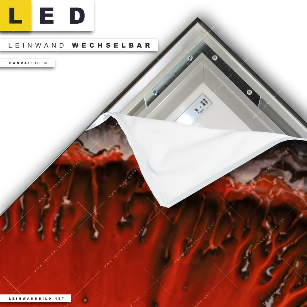 Du konfigurierst Dein individuelles LED Leinwandbild Canvalight® TEX | Fluid Art Lavastrom | Schmal und wir produzieren es NEU für Dich. Unsere Muster - Texturen LED Bilder mit wechselbarer Textil-Leinwand sind KEINE Lagerware. Du bist Dir unsicher, welches Motiv oder Format das richtige für dein individuelles Canvalight® Leuchtbild ist, dann helfen wir dir gerne weiter und beraten dich!