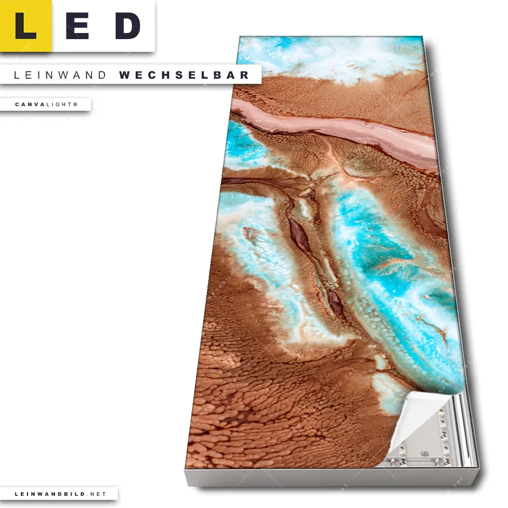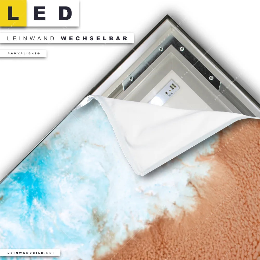 Du konfigurierst Dein individuelles LED Leinwandbild Canvalight® TEX | Fluid Art Sandbank | Schmal und wir produzieren es NEU für Dich. Unsere Muster - Texturen LED Bilder mit wechselbarer Textil-Leinwand sind KEINE Lagerware. Du bist Dir unsicher, welches Motiv oder Format das richtige für dein individuelles Canvalight® Leuchtbild ist, dann helfen wir dir gerne weiter und beraten dich!