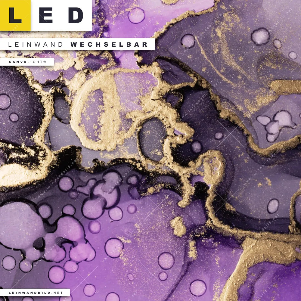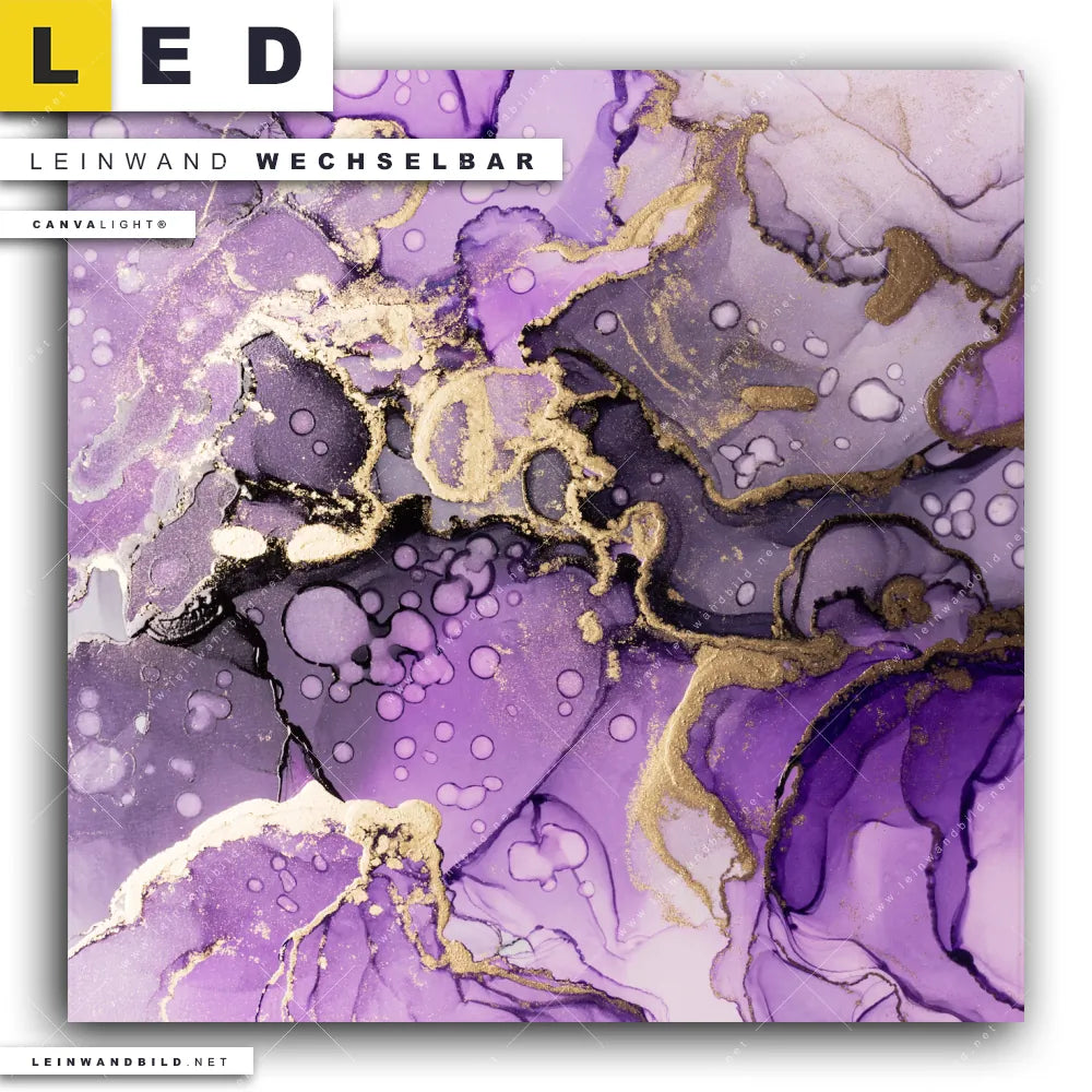 Du bist auf der Suche nach einem Muster - Texturen LED Leinwandbild im Quadratischen Format? Begriffe wie Flüssigkeit, Acryl, flüssig, Farbe, Marmorierung, Tinte, Alkohol, Fluid Art haben Dich auf der Suche nach Deinem neuen XXL LED Wandbild mit wechselbarer Leinwand inspiriert? Farben wie Gold, Lila, Schwarz dürfen auf Deinem neuen Leinwand-LED-Bild nicht fehlen und Leuchtbilder im Abstrakt, Modern Art Stil passen perfekt zu Deinem Einrichtungsstil?