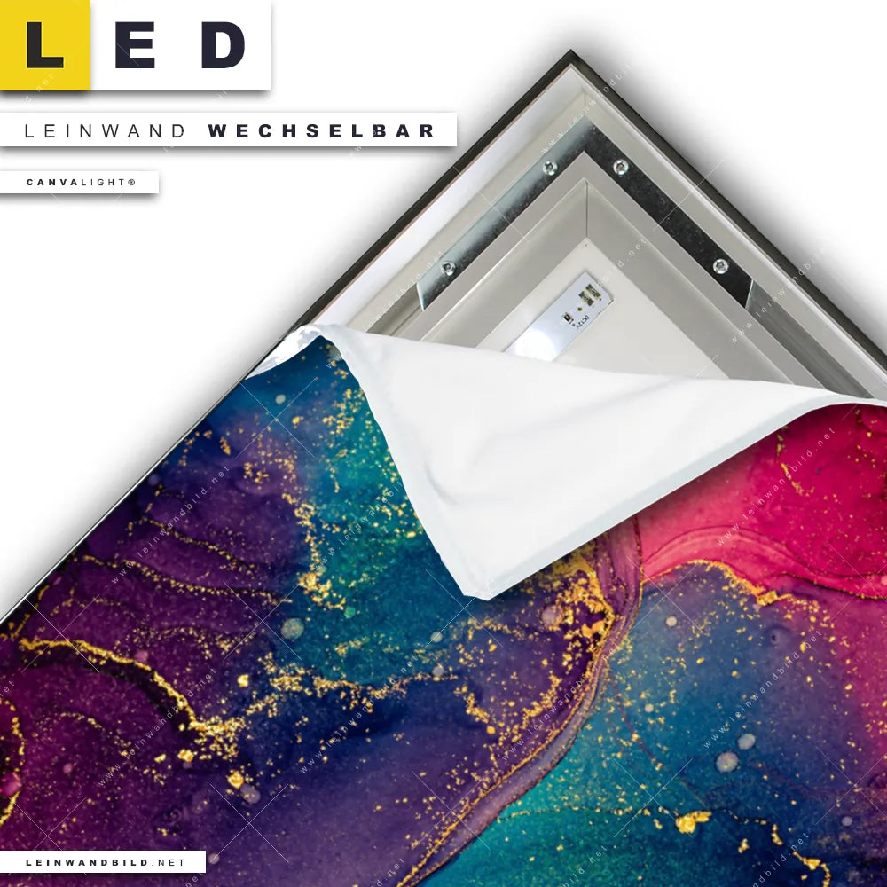 Du konfigurierst Dein individuelles LED Leinwandbild Canvalight® TEX | Fluid Fantasia | Querformat und wir produzieren es NEU für Dich. Unsere Muster - Texturen LED Bilder mit wechselbarer Textil-Leinwand sind KEINE Lagerware. Du bist Dir unsicher, welches Motiv oder Format das richtige für dein individuelles Canvalight® Leuchtbild ist, dann helfen wir dir gerne weiter und beraten dich!
