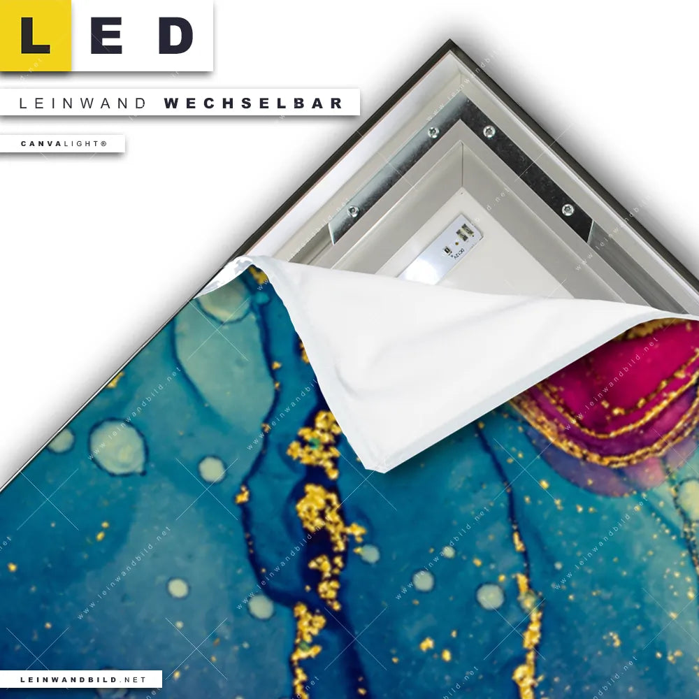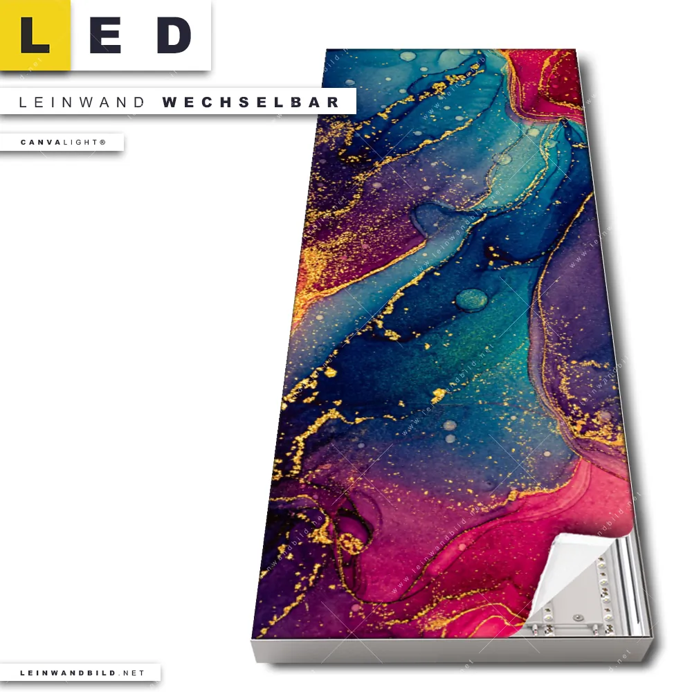 Du konfigurierst Dein individuelles LED Leinwandbild Canvalight® TEX | Fluid Fantasia | Schmal und wir produzieren es NEU für Dich. Unsere Muster - Texturen LED Bilder mit wechselbarer Textil-Leinwand sind KEINE Lagerware. Du bist Dir unsicher, welches Motiv oder Format das richtige für dein individuelles Canvalight® Leuchtbild ist, dann helfen wir dir gerne weiter und beraten dich!