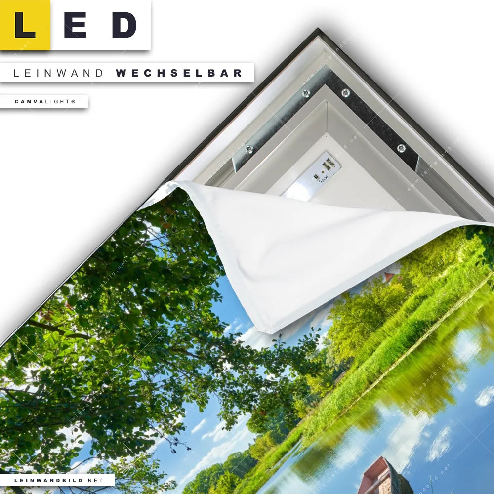 Du konfigurierst Dein individuelles LED Leinwandbild Canvalight® TEX | Flusslandschaft | Quadrat und wir produzieren es NEU für Dich. Unsere Landschaften LED Bilder mit wechselbarer Textil-Leinwand sind KEINE Lagerware. Du bist Dir unsicher, welches Motiv oder Format das richtige für dein individuelles Canvalight® Leuchtbild ist, dann helfen wir dir gerne weiter und beraten dich!