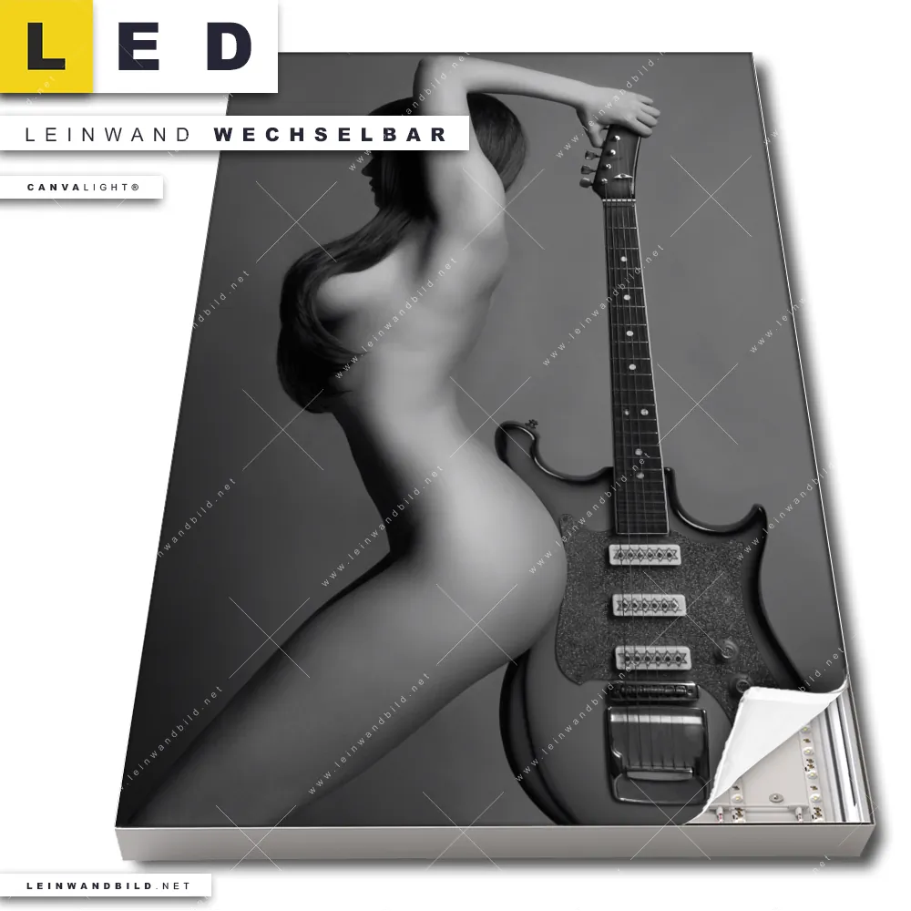 Du bist auf der Suche nach einem Erotik - Akt, Porträts - Menschen LED Leinwandbild im Hochformat? Begriffe wie Frau, Erotik, modern, Beauty, Körper, Body, Akt, Musik, Gitarre, Instrument haben Dich auf der Suche nach Deinem neuen XXL LED Wandbild mit wechselbarer Leinwand inspiriert? Farben wie Schwarz, Weiss dürfen auf Deinem neuen Leinwand-LED-Bild nicht fehlen und Leuchtbilder im Natürlich - Realistisch, Schwarz - Weiss Stil passen perfekt zu Deinem Einrichtungsstil?