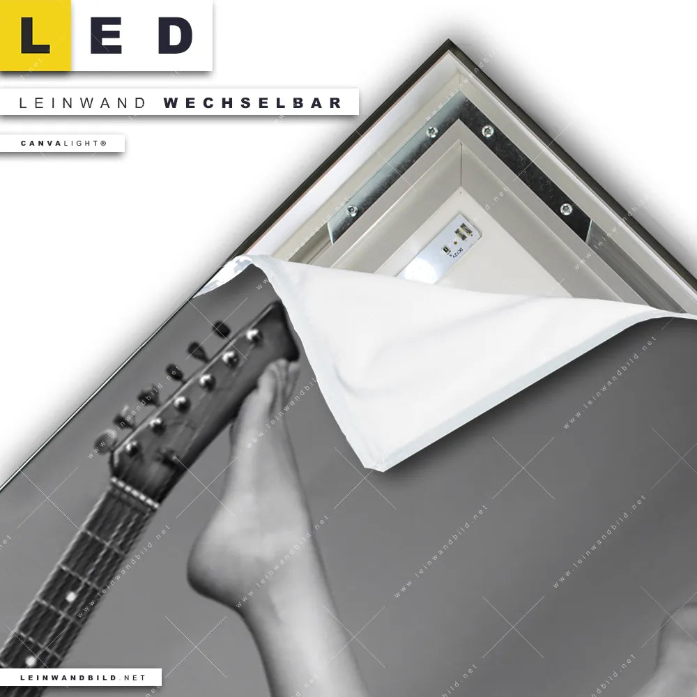 Du konfigurierst Dein individuelles LED Leinwandbild Canvalight® TEX | Frau & Gitarre No.2 | Panorama und wir produzieren es NEU für Dich. Unsere Erotik - Akt LED Bilder mit wechselbarer Textil-Leinwand sind KEINE Lagerware. Du bist Dir unsicher, welches Motiv oder Format das richtige für dein individuelles Canvalight® Leuchtbild ist, dann helfen wir dir gerne weiter und beraten dich!
