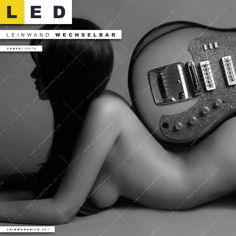 Du bist auf der Suche nach einem Erotik - Akt LED Leinwandbild im Schmalen Format? Begriffe wie Frau, Erotik, modern, Beauty, Körper, Body, Akt, Musik, Gitarre, Instrument haben Dich auf der Suche nach Deinem neuen XXL LED Wandbild mit wechselbarer Leinwand inspiriert? Farben wie Schwarz, Weiss dürfen auf Deinem neuen Leinwand-LED-Bild im Panorama-Hochformat nicht fehlen und Leuchtbilder im Natürlich - Realistisch Stil passen perfekt zu Deinem Einrichtungsstil?