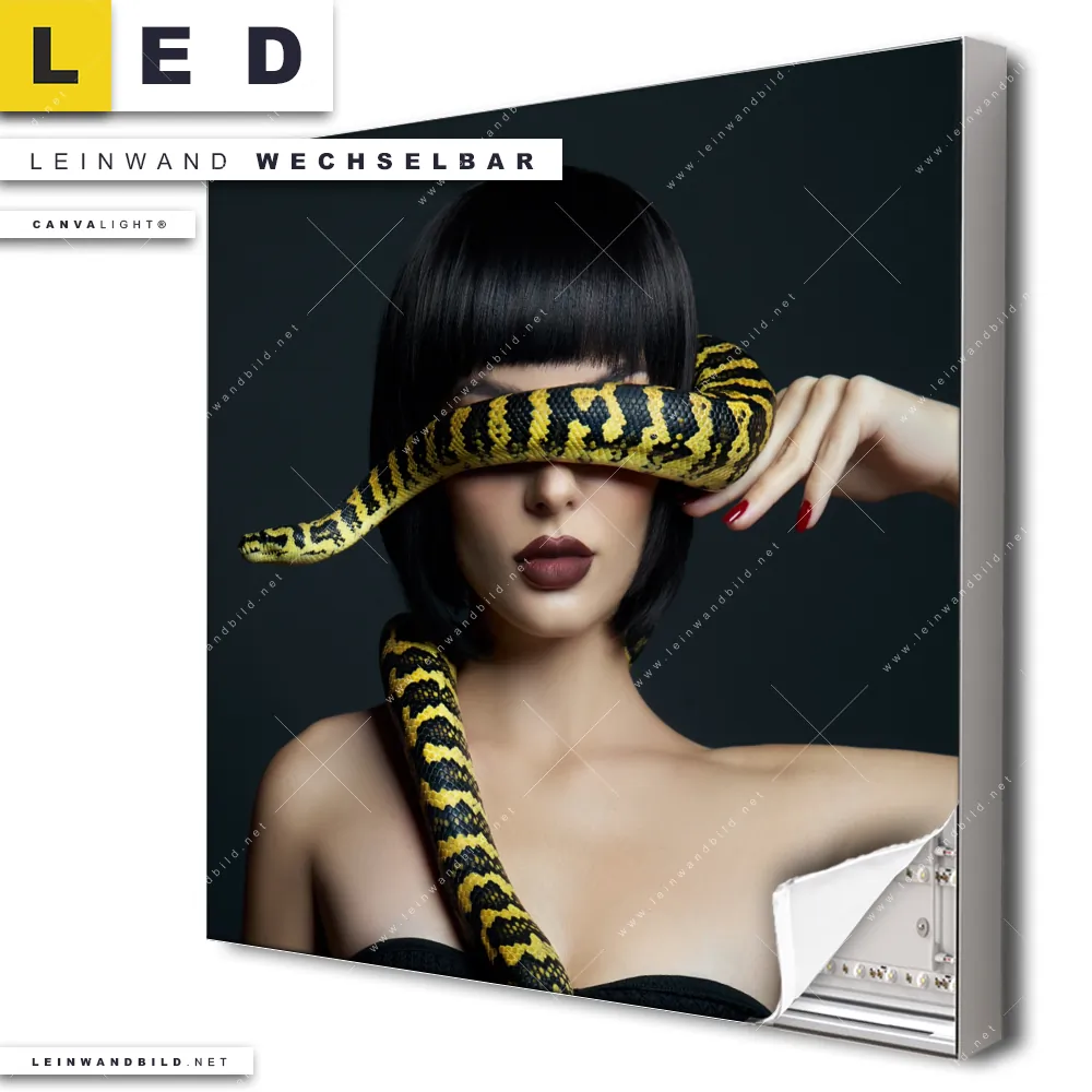 LED Leinwandbild Canvalight® TEX | Frau mit gelber Schlange | Quadrat
