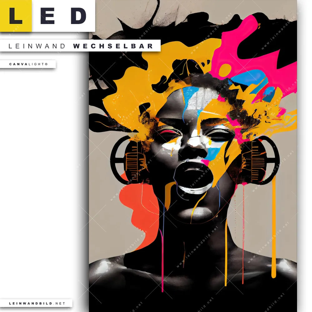 Du bist auf der Suche nach einem Porträts - Menschen LED Leinwandbild im Hochformat? Begriffe wie Frau, Portrait, Gesicht, Mädchen, Dame, Farbe, Musik, Kopfhörer haben Dich auf der Suche nach Deinem neuen XXL LED Wandbild mit wechselbarer Leinwand inspiriert? Farben wie Beige, Schwarz, Orange, Pink dürfen auf Deinem neuen Leinwand-LED-Bild nicht fehlen und Leuchtbilder im Abstrakt, Modern Art Stil passen perfekt zu Deinem Einrichtungsstil?