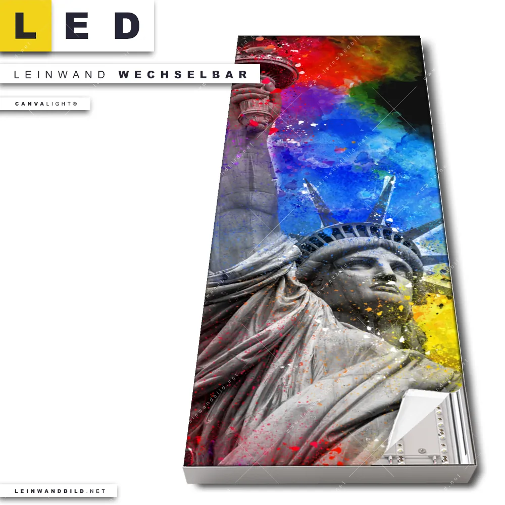LED Leinwandbild Canvalight® TEX | Freiheitsstatue Pop Art No.2 | Schmal