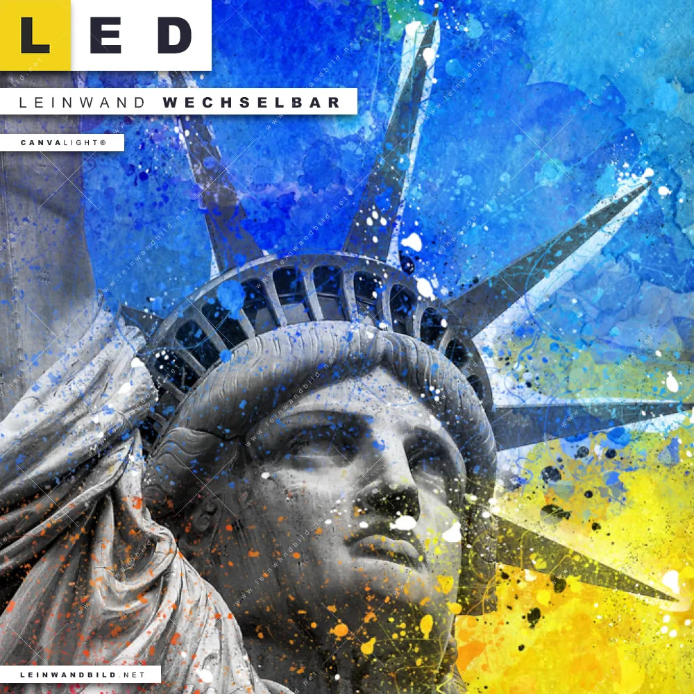 Du bist auf der Suche nach einem Porträts - Menschen, Städte - Skylines LED Leinwandbild im Schmalen Format? Begriffe wie Freiheitsstatue, Statue of Liberty, Pop Art, Kunst, bunt, Amerika, USA, Kultur haben Dich auf der Suche nach Deinem neuen XXL LED Wandbild mit wechselbarer Leinwand inspiriert? Farben wie Bunt, Schwarz, Blau, Gelb , Grün, Lila, Rot dürfen auf Deinem neuen Leinwand-LED-Bild im Panorama-Hochformat nicht fehlen und Leuchtbilder im Modern Art, Pop Art Stil passen perfekt zu Deinem Einrichtungsstil?