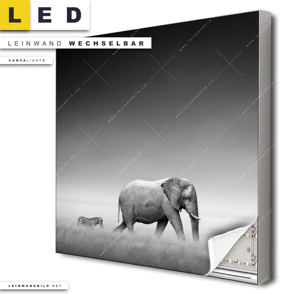 Du bist auf der Suche nach einem Tierwelt, Landschaften LED Leinwandbild im Quadratischen Format? Begriffe wie Afrika, wild, Safari, Zebra, Elefant, Savanne, Steppe haben Dich auf der Suche nach Deinem neuen XXL LED Wandbild mit wechselbarer Leinwand inspiriert? Farben wie Weiss, Schwarz dürfen auf Deinem neuen Leinwand-LED-Bild nicht fehlen und Leuchtbilder im Natürlich - Realistisch, Schwarz - Weiss Stil passen perfekt zu Deinem Einrichtungsstil?