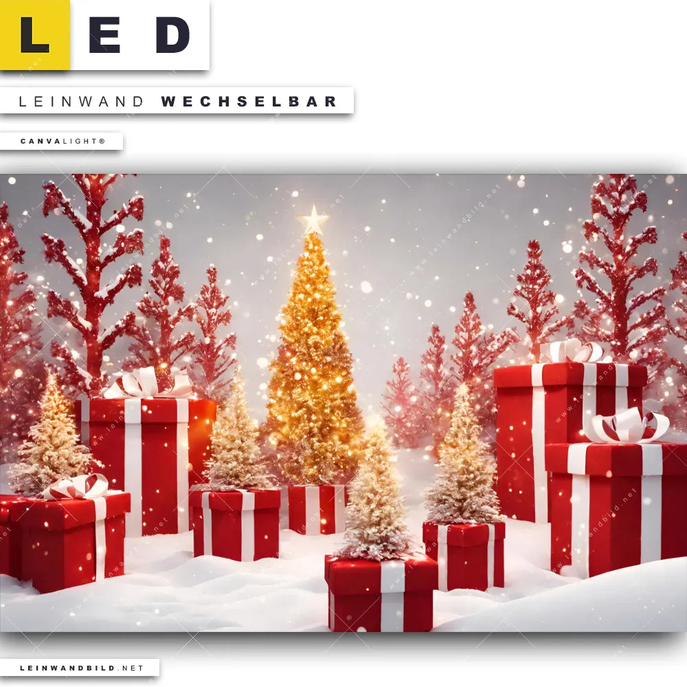 Du bist auf der Suche nach einem Winter LED Leinwandbild im Querformat? Begriffe wie Weihnachten, Tannebaum, Geschenke, Weihnachtskugeln haben Dich auf der Suche nach Deinem neuen XXL LED Wandbild mit wechselbarer Leinwand inspiriert? Farben wie Weiss, Gold, Beige, Orange, Rot, Grau dürfen auf Deinem neuen breiten Leinwand-LED-Bild nicht fehlen und Leuchtbilder im Abstrakt, Minimalistisch Stil passen perfekt zu Deinem Einrichtungsstil?
