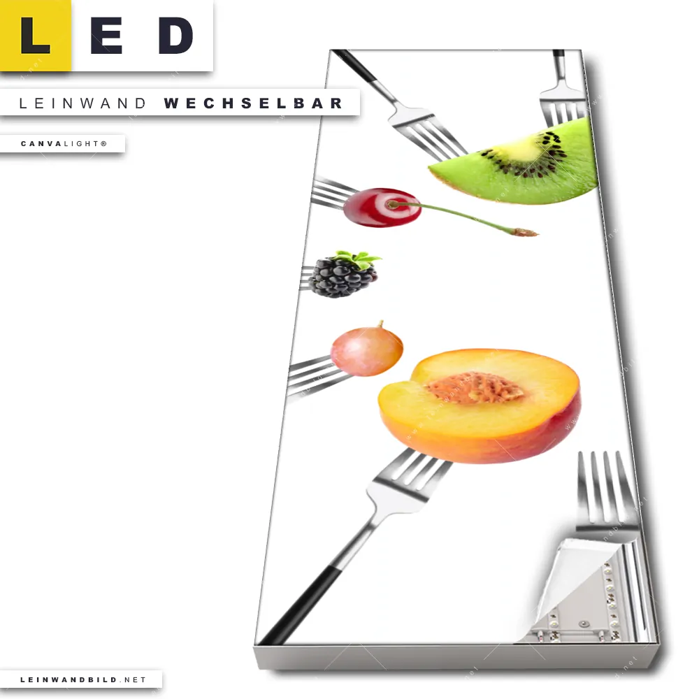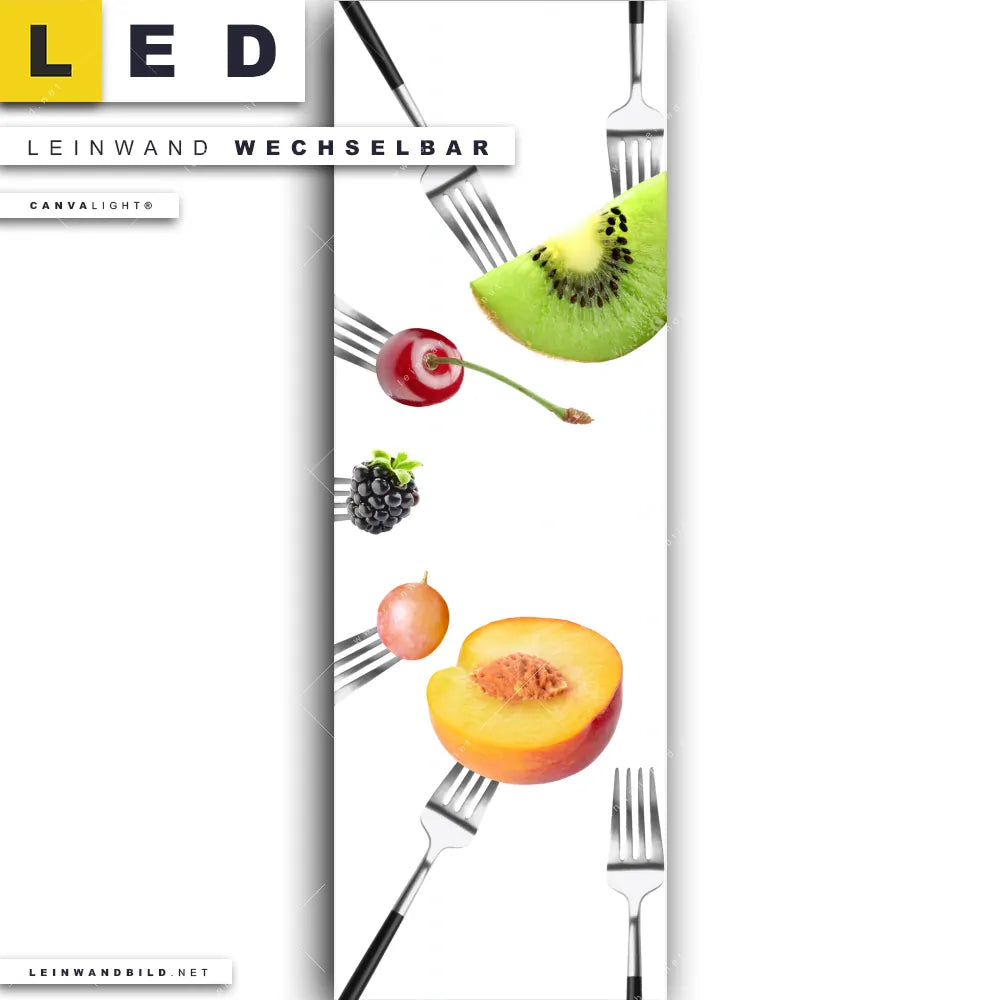 LED Leinwandbild Canvalight® TEX | Früchte auf Gabeln | Schmal