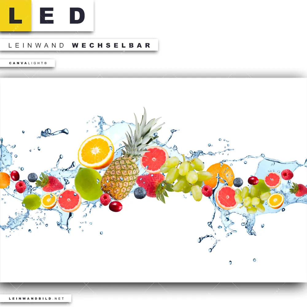 LED Leinwandbild Canvalight® TEX | Früchte in Spritzwasser | Querformat