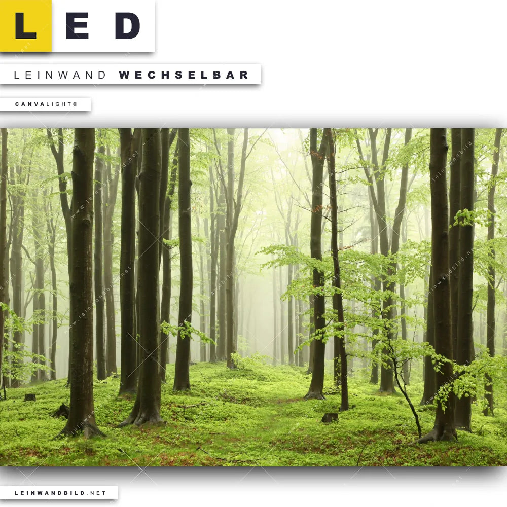 Du bist auf der Suche nach einem Landschaften, Wald - Bäume LED Leinwandbild im Querformat? Begriffe wie Wald, Baum, Nebel, Landschaft, Mystik, Natur, Frühling haben Dich auf der Suche nach Deinem neuen XXL LED Wandbild mit wechselbarer Leinwand inspiriert? Farben wie Weiss, Beige, Braun, Grün dürfen auf Deinem neuen breiten Leinwand-LED-Bild nicht fehlen und Leuchtbilder im Natürlich - Realistisch Stil passen perfekt zu Deinem Einrichtungsstil?