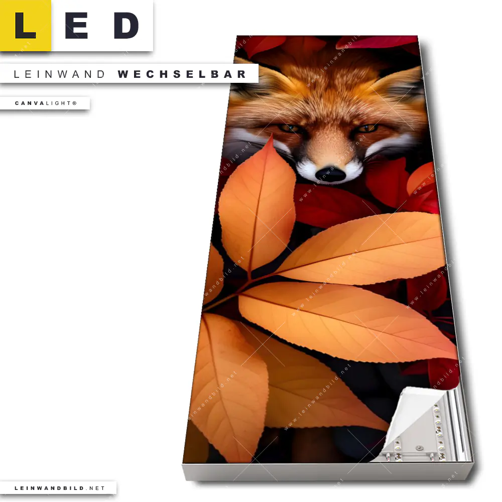 LED Leinwandbild Canvalight® TEX | Fuchs im Herbstlaub | Schmal