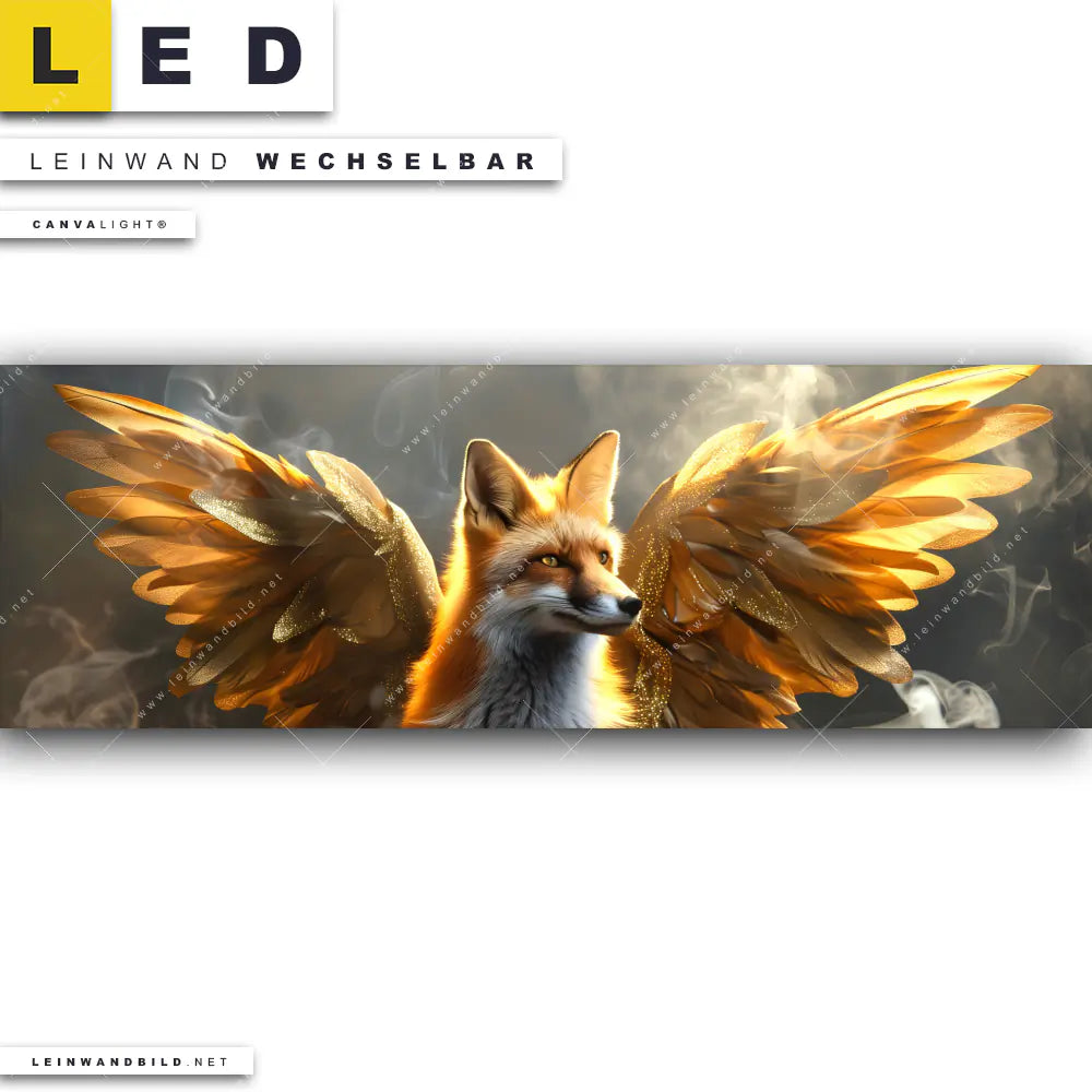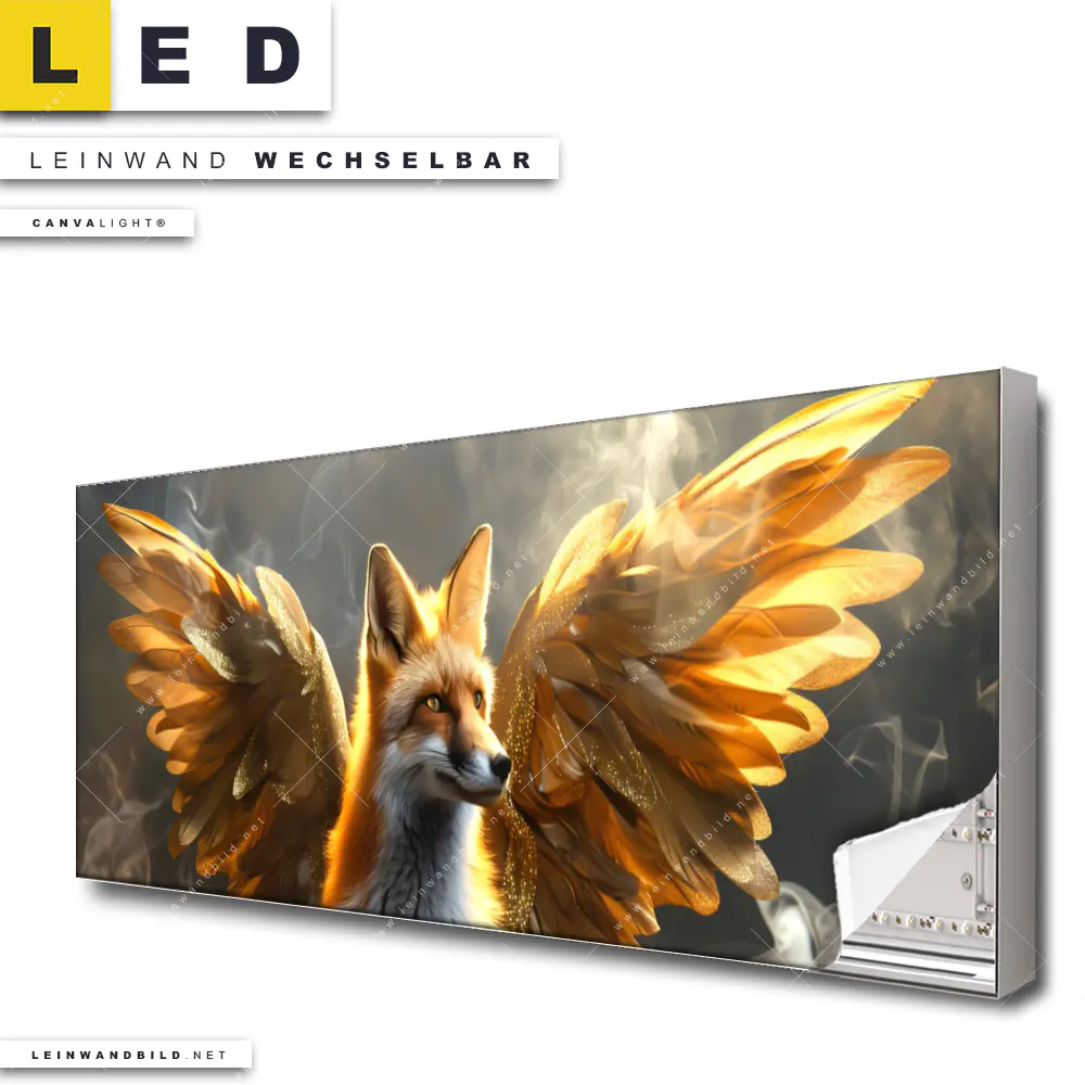 LED Leinwandbild Canvalight® TEX | Fuchs mit goldenen Flügeln | Panorama