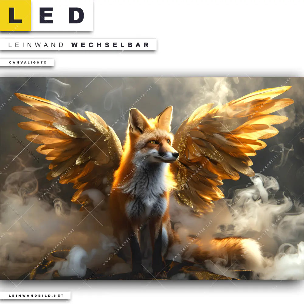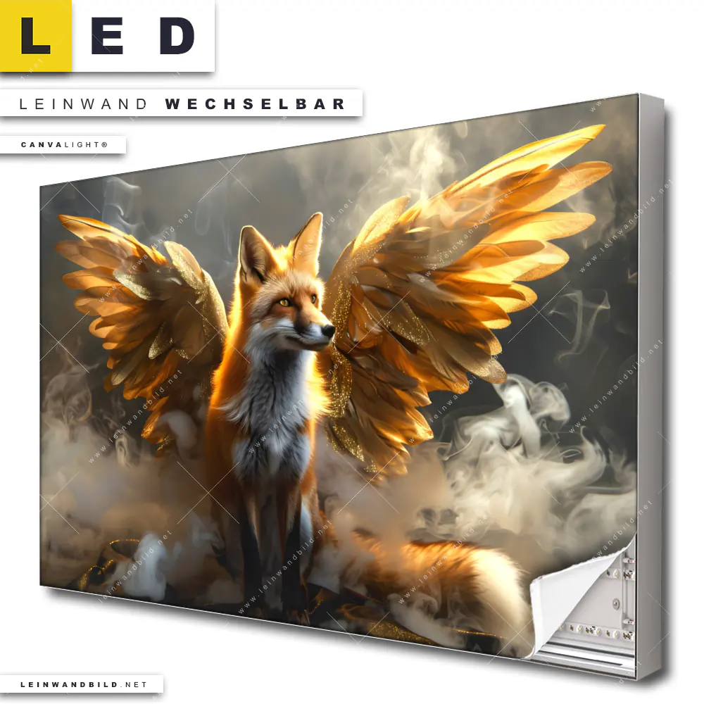 LED Leinwandbild Canvalight® TEX | Fuchs mit goldenen Flügeln | Querformat