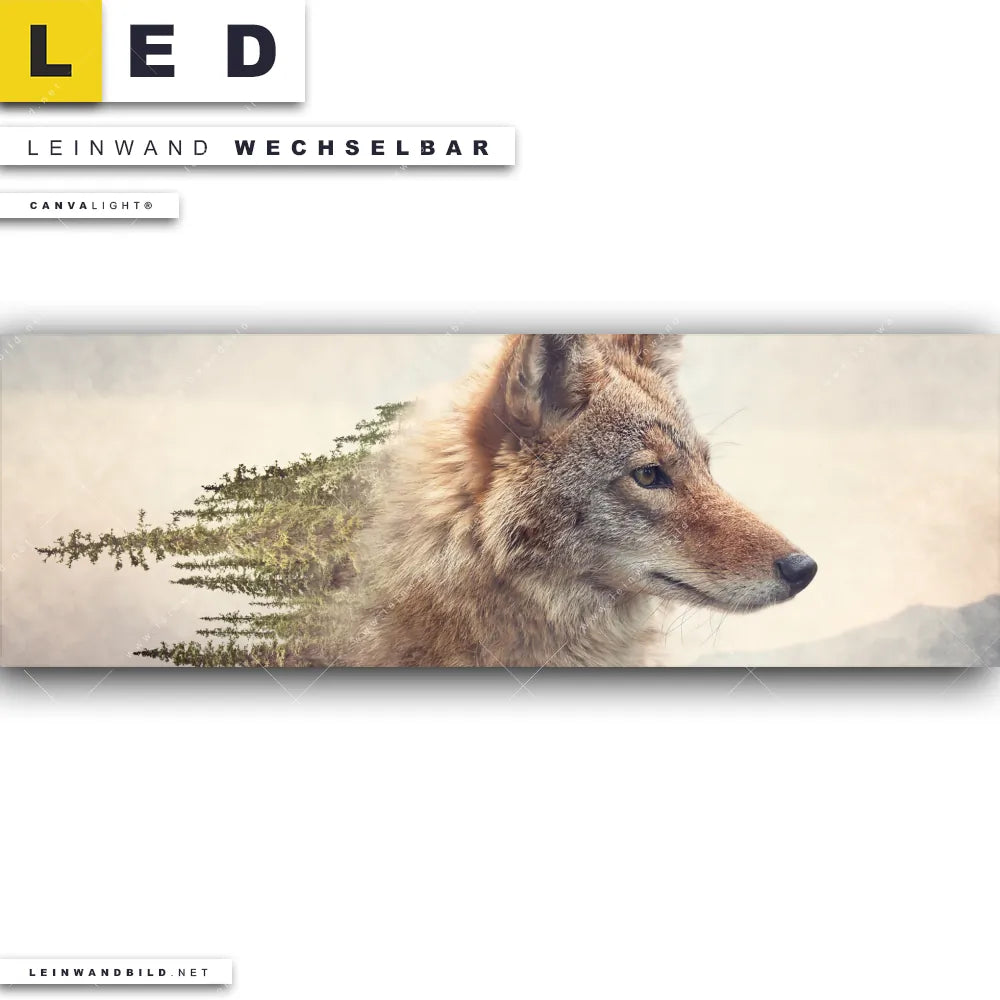 Du bist auf der Suche nach einem Tierwelt LED Leinwandbild im Panorama-Format? Begriffe wie Fuchs, Wald, Doppelbelichtung, Natur, skandinavisch, Bäume haben Dich auf der Suche nach Deinem neuen XXL LED Wandbild mit wechselbarer Leinwand inspiriert? Farben wie Beige, Grün dürfen auf Deinem neuen extra breiten Leinwand-LED-Bild nicht fehlen und Leuchtbilder im Mixed Media, Modern Art Stil passen perfekt zu Deinem Einrichtungsstil?