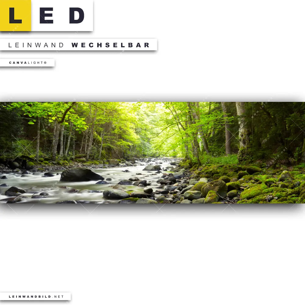 LED Leinwandbild Canvalight® TEX | Gebirgsfluss im Wald | Panorama