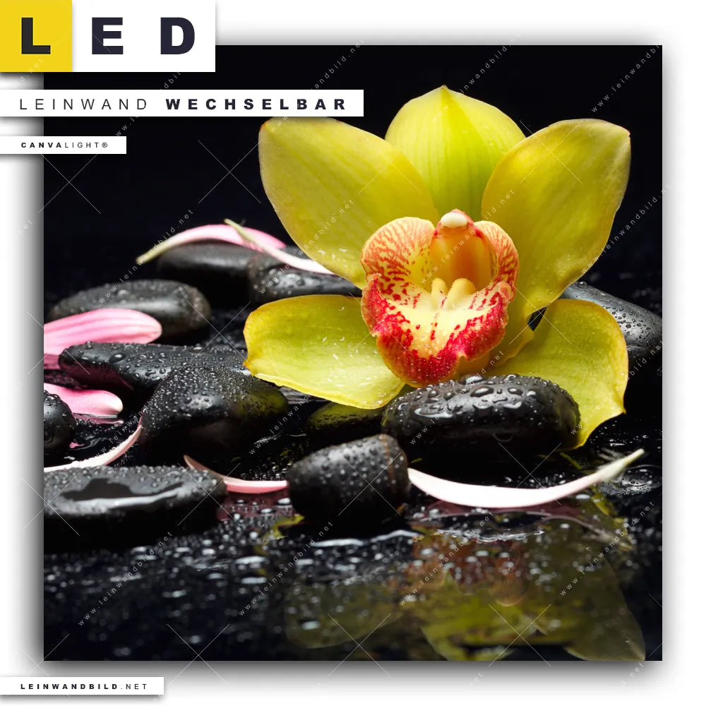 Du bist auf der Suche nach einem Buddha - Feng Shui, Blumen - Botanik LED Leinwandbild im Quadratischen Format? Begriffe wie Zen, Steine, Blume, Blüte, Pflanze, Tropfen, Orchidee haben Dich auf der Suche nach Deinem neuen XXL LED Wandbild mit wechselbarer Leinwand inspiriert? Farben wie Schwarz, Grün, Orange, Rosa dürfen auf Deinem neuen Leinwand-LED-Bild nicht fehlen und Leuchtbilder im Floral, Modern Art Stil passen perfekt zu Deinem Einrichtungsstil?
