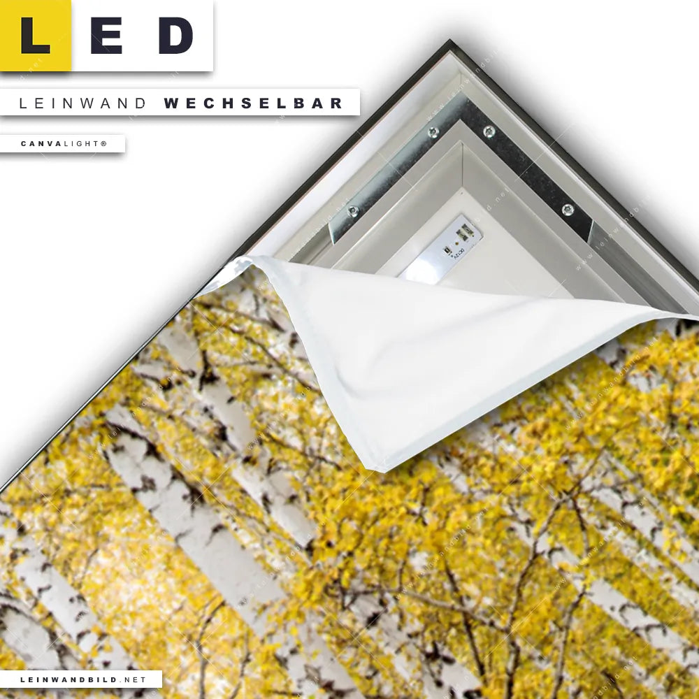 Du konfigurierst Dein individuelles LED Leinwandbild Canvalight® TEX | Gelber Birkenwald | Panorama und wir produzieren es NEU für Dich. Unsere Landschaften, Wald - Bäume LED Bilder mit wechselbarer Textil-Leinwand sind KEINE Lagerware. Du bist Dir unsicher, welches Motiv oder Format das richtige für dein individuelles Canvalight® Leuchtbild ist, dann helfen wir dir gerne weiter und beraten dich!