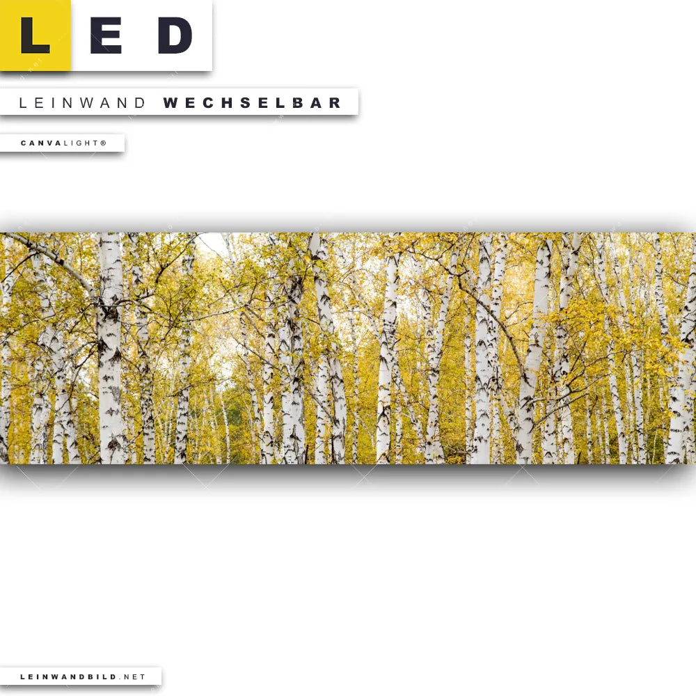 LED Leinwandbild Canvalight® TEX | Gelber Birkenwald | Panorama