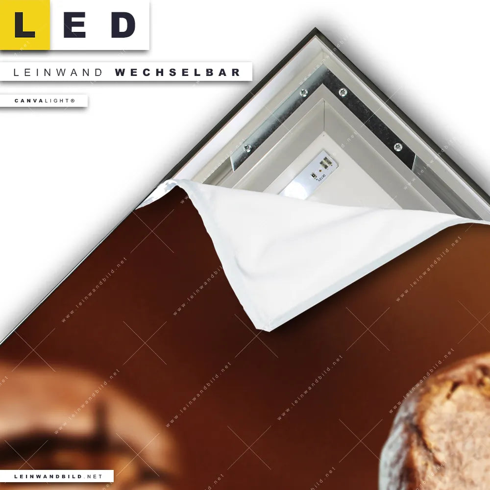 Du konfigurierst Dein individuelles LED Leinwandbild Canvalight® TEX | Geröstete Kaffeebohnen No.2 | Schmal und wir produzieren es NEU für Dich. Unsere Essen - Trinken LED Bilder mit wechselbarer Textil-Leinwand sind KEINE Lagerware. Du bist Dir unsicher, welches Motiv oder Format das richtige für dein individuelles Canvalight® Leuchtbild ist, dann helfen wir dir gerne weiter und beraten dich!
