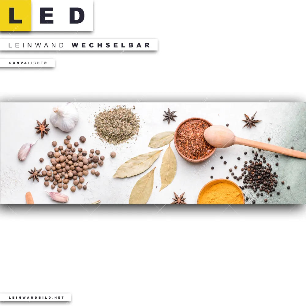Du konfigurierst Dein individuelles LED Leinwandbild Canvalight® TEX | Gewürze auf hellem Untergrund | Panorama und wir produzieren es NEU für Dich. Unsere Essen - Trinken LED Bilder mit wechselbarer Textil-Leinwand sind KEINE Lagerware. Du bist Dir unsicher, welches Motiv oder Format das richtige für dein individuelles Canvalight® Leuchtbild ist, dann helfen wir dir gerne weiter und beraten dich!