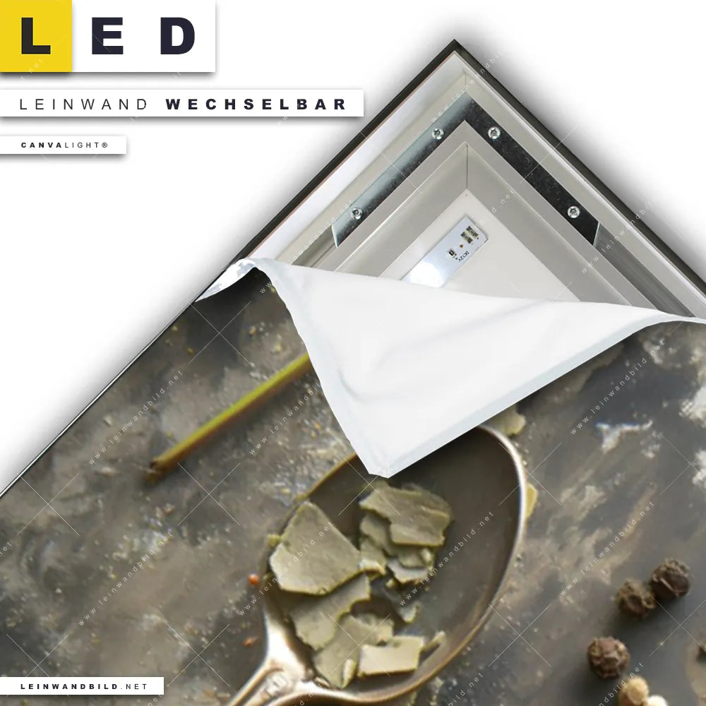 Du konfigurierst Dein individuelles LED Leinwandbild Canvalight® TEX | Gewürze der Welt | Schmal und wir produzieren es NEU für Dich. Unsere Essen - Trinken LED Bilder mit wechselbarer Textil-Leinwand sind KEINE Lagerware. Du bist Dir unsicher, welches Motiv oder Format das richtige für dein individuelles Canvalight® Leuchtbild ist, dann helfen wir dir gerne weiter und beraten dich!