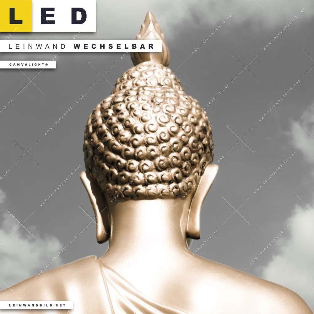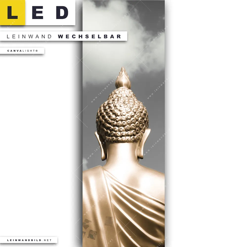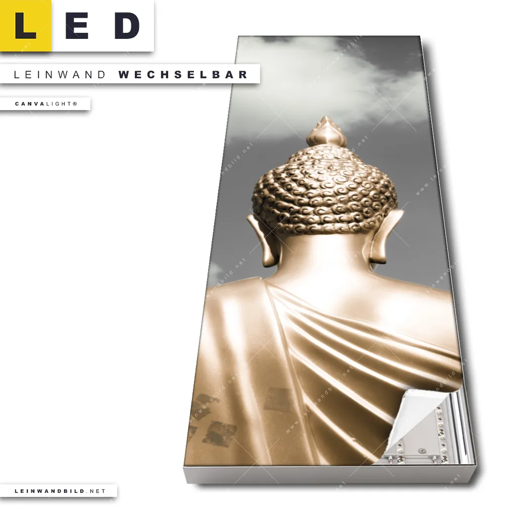 LED Leinwandbild Canvalight® TEX | Goldene Buddha Statue | Schmal